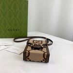 Reminiscent of the ’90s trend, Gucci Love Parade sees recognizable elements of the House playfully presented in miniature. This mini bag is made from jumbo GG canvas and completed by Horsebit hardware.