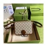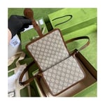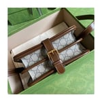 The Interlocking G has remained one of the most symbolic codes of the House since its introduction. The distinguishing emblem appears as a leather detail atop this shoulder bag. Completing the design’s logo feel, the style is crafted from monogram canvas.