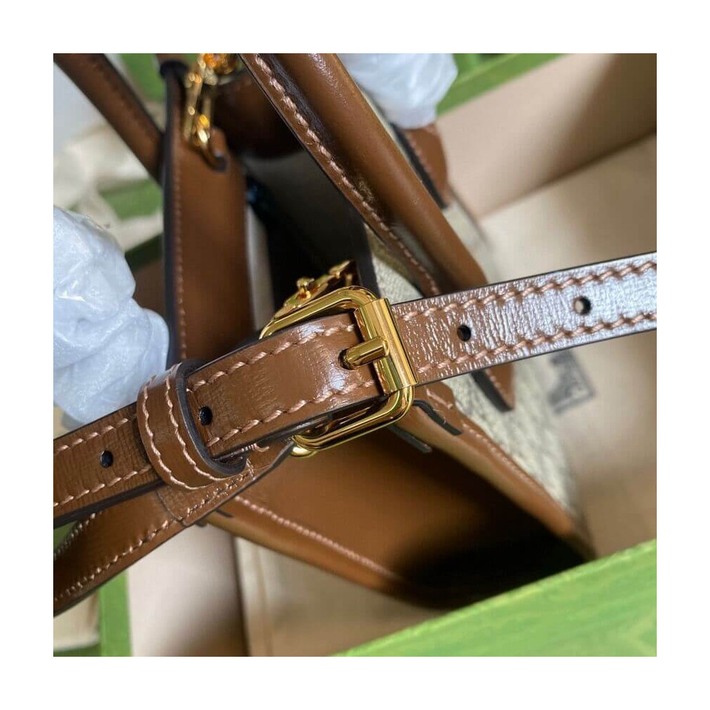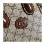 The Interlocking G has remained one of the most symbolic codes of the House since its introduction. The distinguishing emblem appears as a leather detail atop this tote. Completing the design’s logo feel, the bag is crafted from monogram canvas.