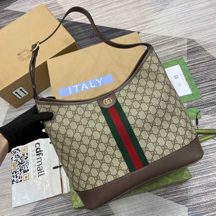 The Ophidia is reinvented in new and unexpected ways in this medium-sized piece which blends the open bucket design and shoulder bag style. It is crafted in the House’s signature GG Supreme canvas in the iconic color combination of beige and ebony.