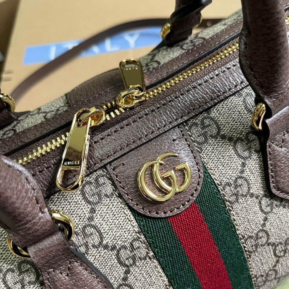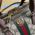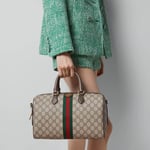 A signature fabric, GG Supreme canvas has become a staple throughout the Gucci universe. Reinterpreted through the Gucci lens, the material appears throughout the latest collections. Here, this medium top handle bag is crafted with the all-over monogram motif. Completing the logo feel, the signature Double G hardware completes the style.