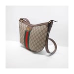 – Beige/ebony soft GG Supreme, crafted from a coated microfiber fabric, with brown leather trim