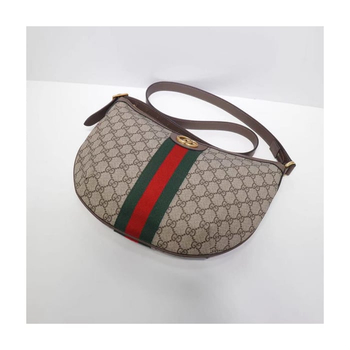 Mirroring the material’s historic origins, GG Supreme is introduced in a timeless mix of blue and beige for Gucci Love Parade. With a low environmental impact, the canvas has come to the front of each collection decade after decade to become a hallmark of the House. Here, the classic palette defines this Ophidia shoulder bag.