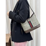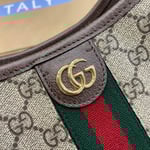 The Ophidia is reinvented in new and unexpected ways in this small-sized piece which blends the open bucket design and shoulder bag style. It is crafted in the House’s signature GG Supreme canvas in the iconic color combination of beige and ebony.