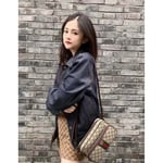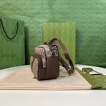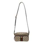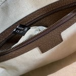 The GG Supreme canvas has come to the front of each collection decade after decade, becoming a hallmark of the House. Here a beige and ebony variation defines this small Ophidia messenger bag, adding a contemporary feel to a classic travel piece.