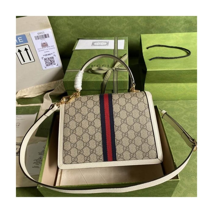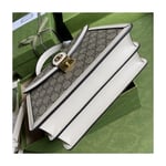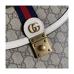 The world of Ophidia continues to evolve with new iterations each season. The top handle bag is presented as part of the Epilogue collection with a detachable shoulder strap. The vintage influenced square shape is accentuated by the House Web stripe and Double G hardware—a contemporary take on a Gucci archival belt buckle from the ’70s. Crafted from the House’s monogram canvas, the style has a strong logo feel.