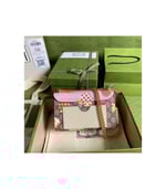 Fruits and vegetables become the brand’s current fashion design elements, injecting full vitality into the new series, vividly interpreting the brand’s innocent and fun mood. This small Padlock series shoulder bag uses an interesting Gucci heart apple pattern to echo the theme.