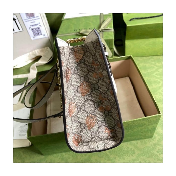 – Beige and ebony GG Supreme canvas with metallic cherry and strawberry print, a material with low environmental impact
