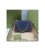 Home Shop All Bags Gucci Gucci Small Dionysus Shoulder Bag in Blue Jacquard Denim 28cm