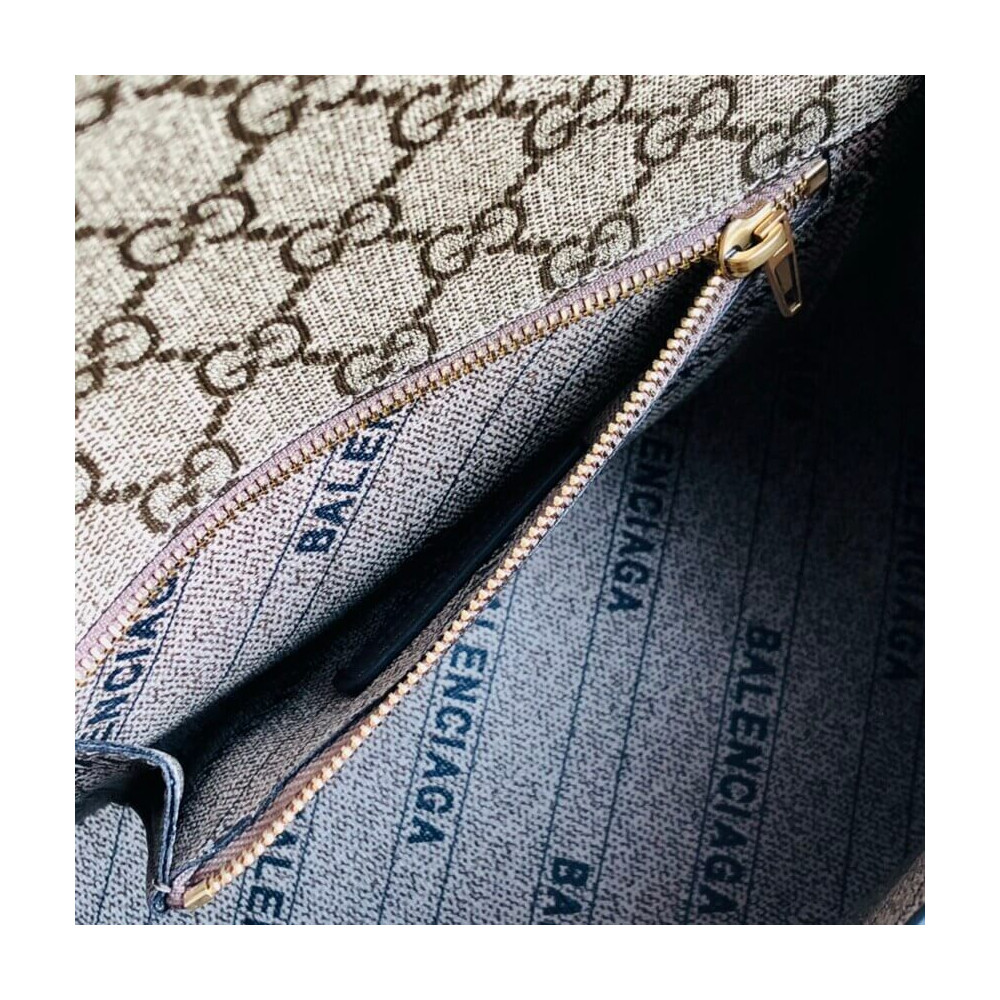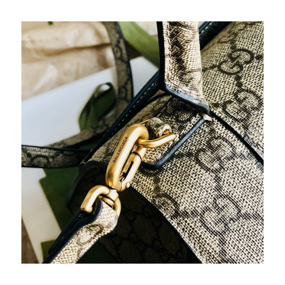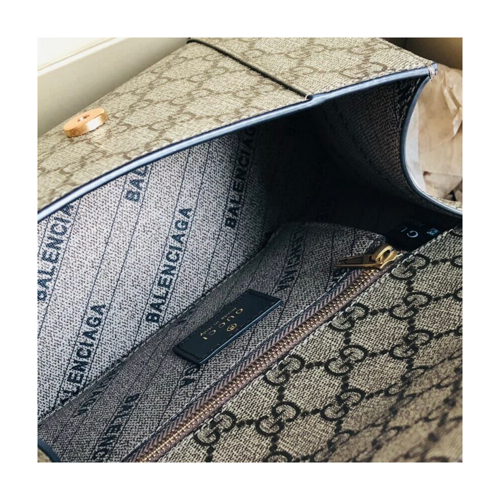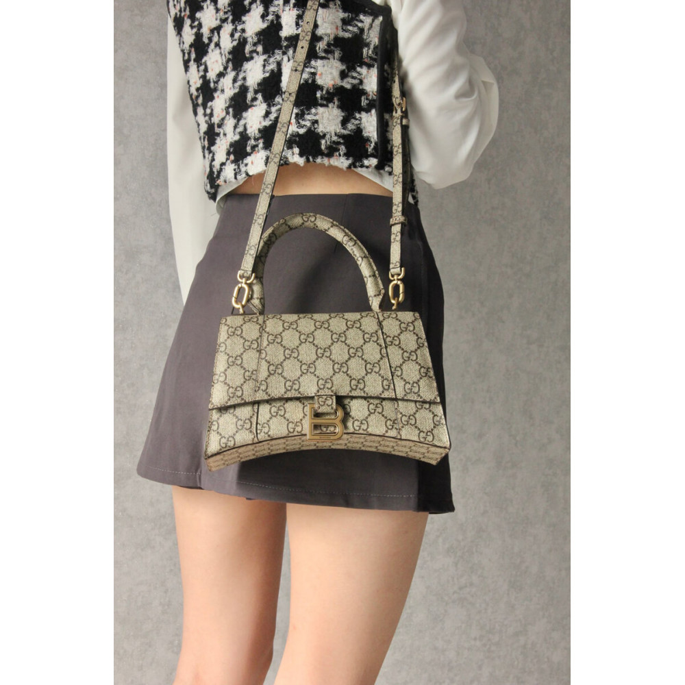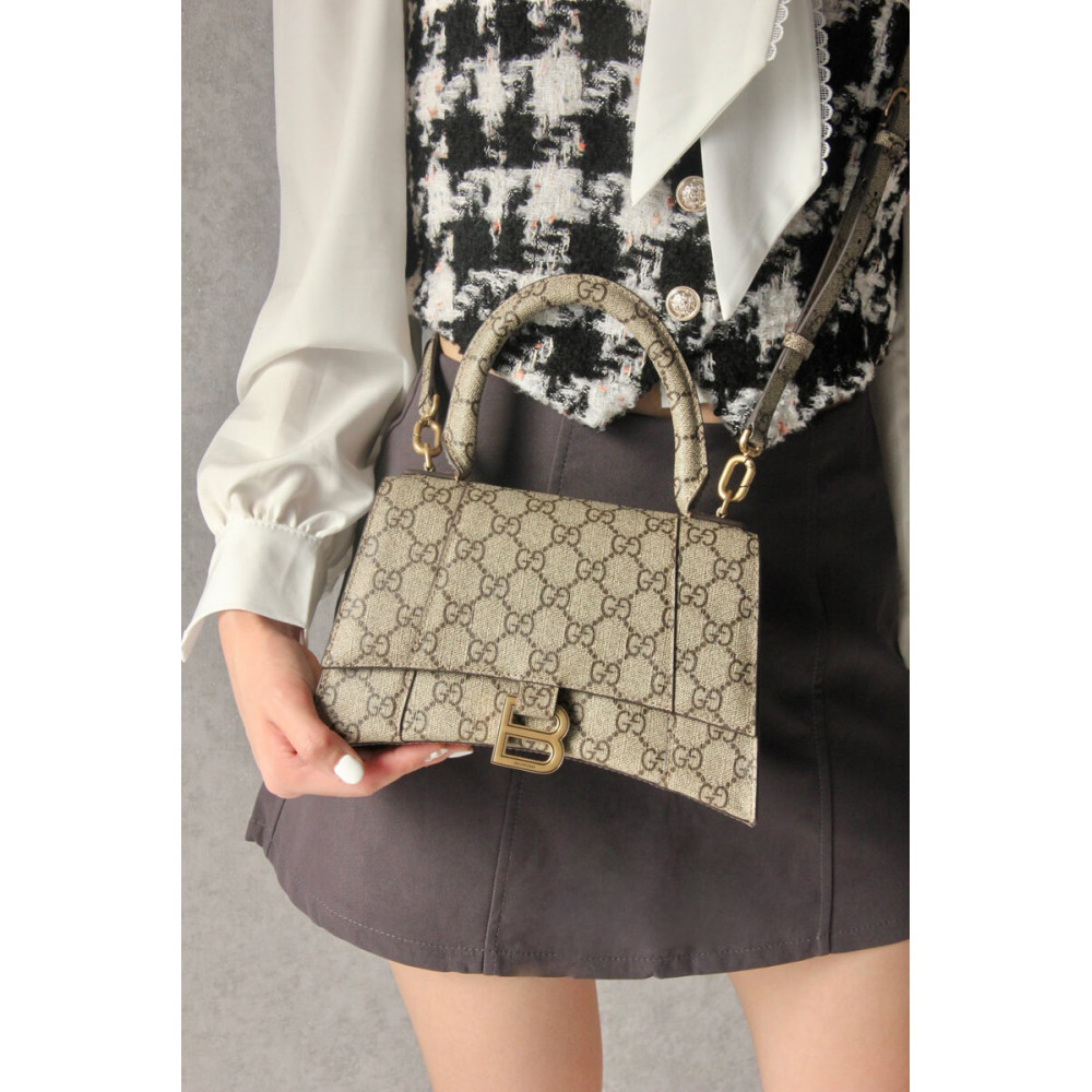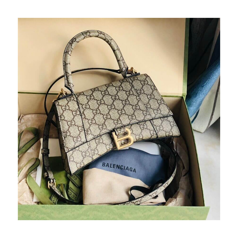 Exploring ideas of authenticity and appropriation within the fashion industry, Gucci Aria unveils The Hacker Project. In his latest collection, Alessandro Michele—in expressions of homage—infuses iconic Balenciaga silhouettes with Gucci codes in unique creations. Presented as a part of the selection, the Hourglass bag is reimagined in GG Supreme canvas.