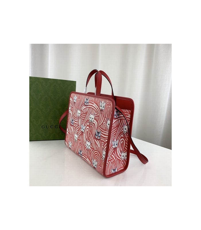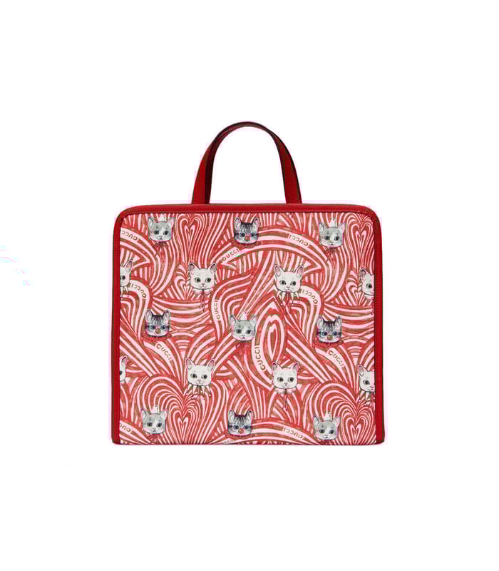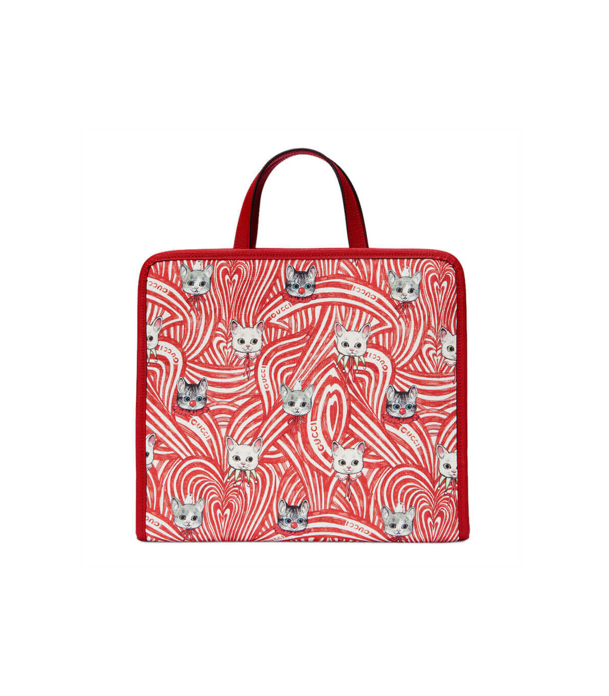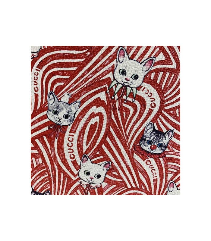 – Red and white Supreme canvas with cat print by Japanese artist Yuko Higuchi, a material with low environmental impact