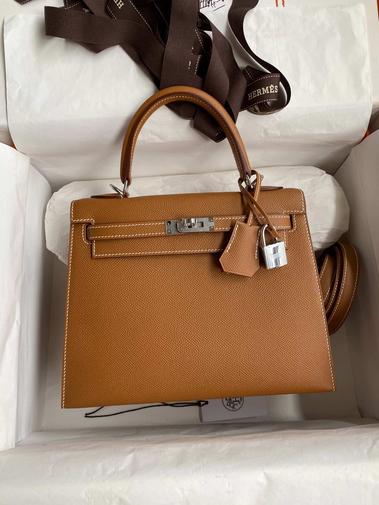 Hermes Kelly 25 Bag In Gold Brown Epsom Leather For Women 25cm/10in