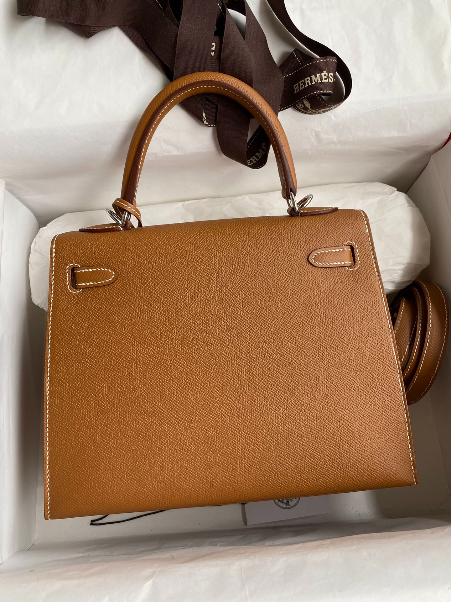 – “Hermes Paris made in France” embossed on front under the flap