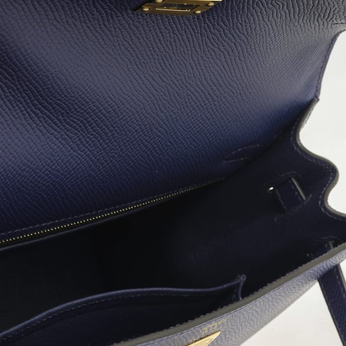 Hermes Kelly 25 Bag In Golden Bleu Navy Epsom Leather For Women 25cm/10in
