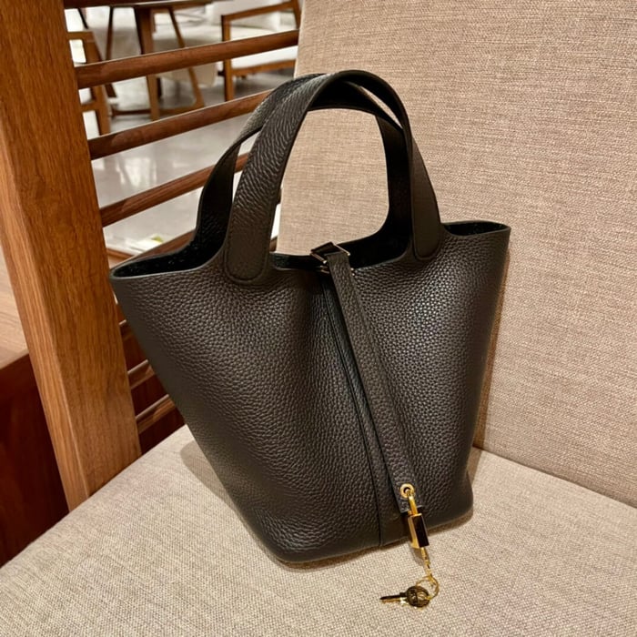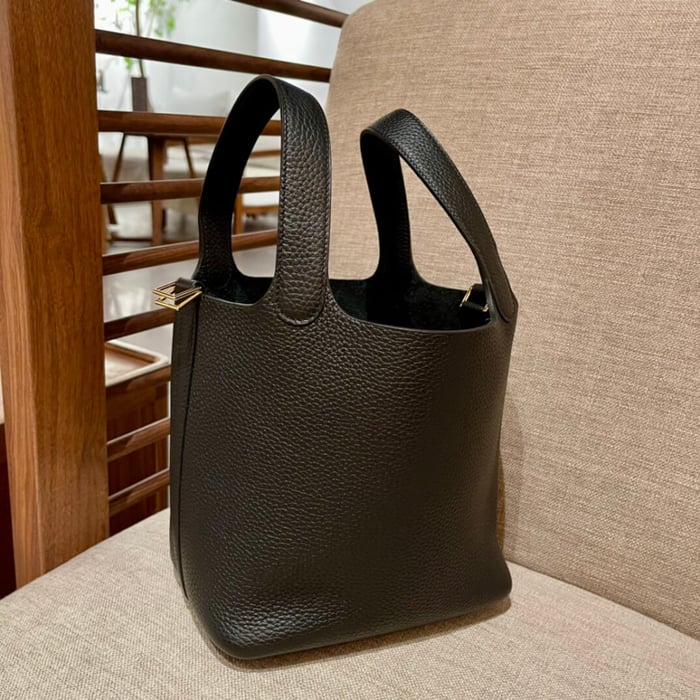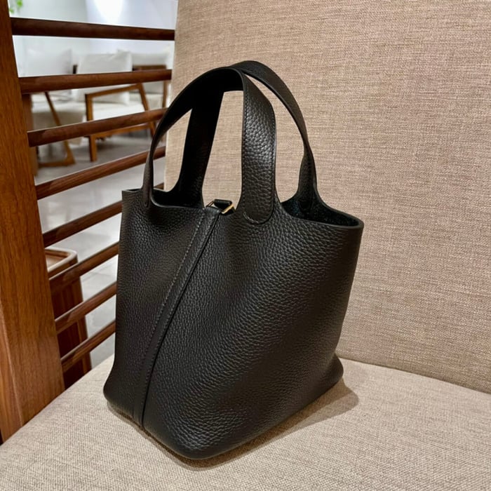 Hermes Picotin Lock Bag In Taurillon Clemence Noir Black 22Cm