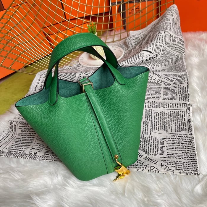 Hermes Picotin Lock Bag In Taurillon Clemence Bambou 22Cm