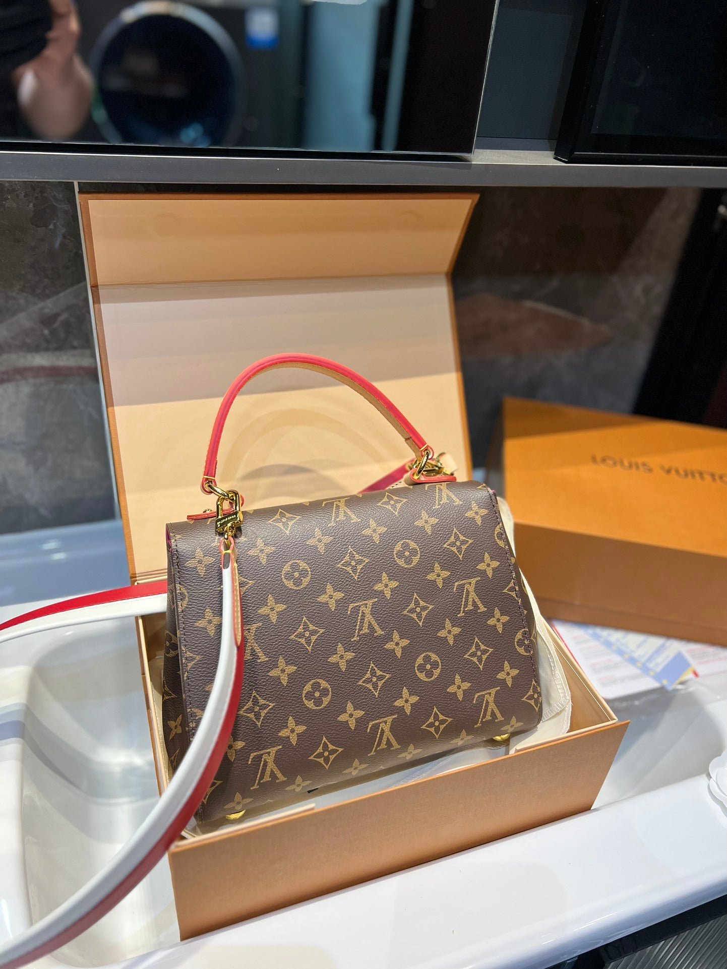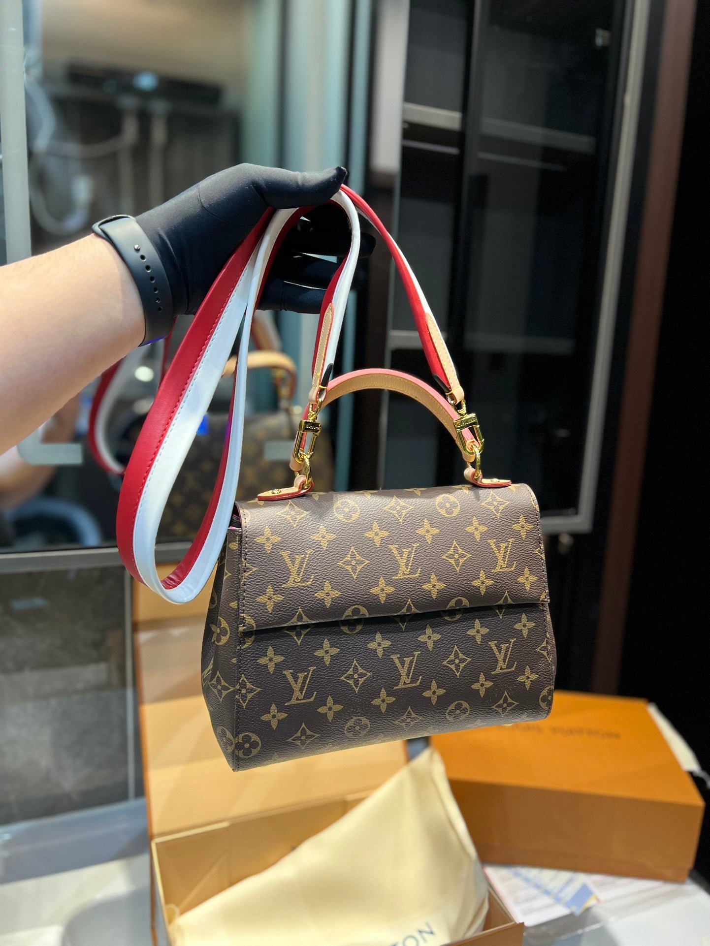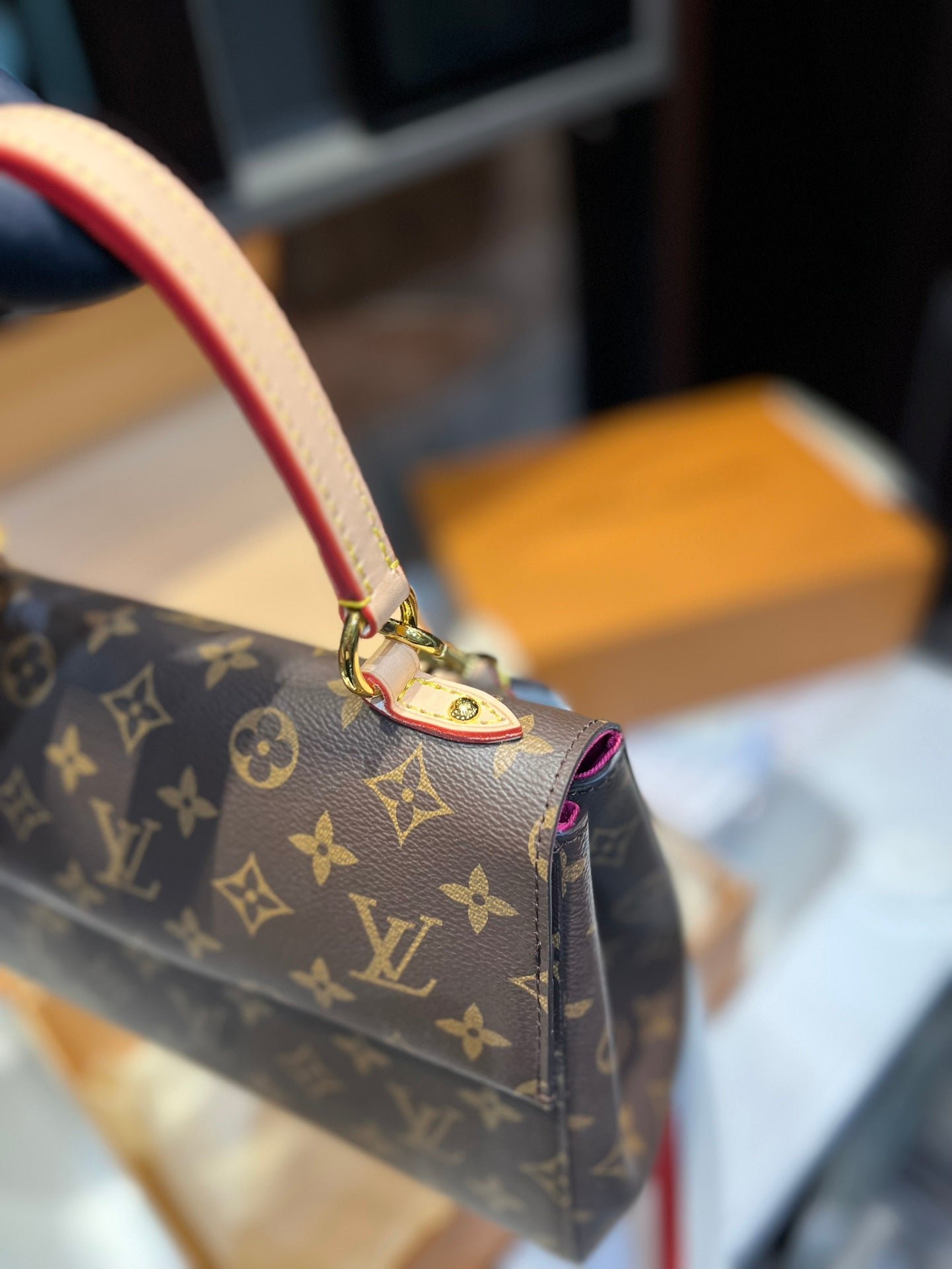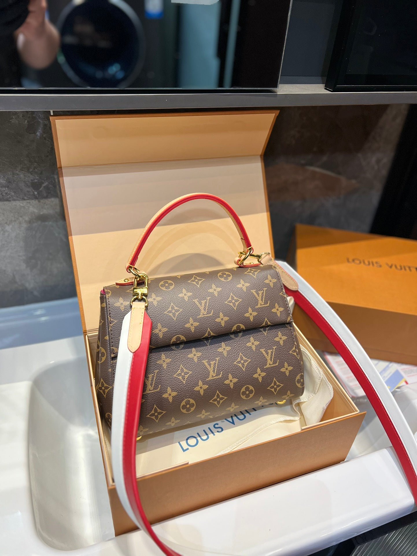 Louis Vuitton Cluny Brown Beige And Red Strap 25Cm