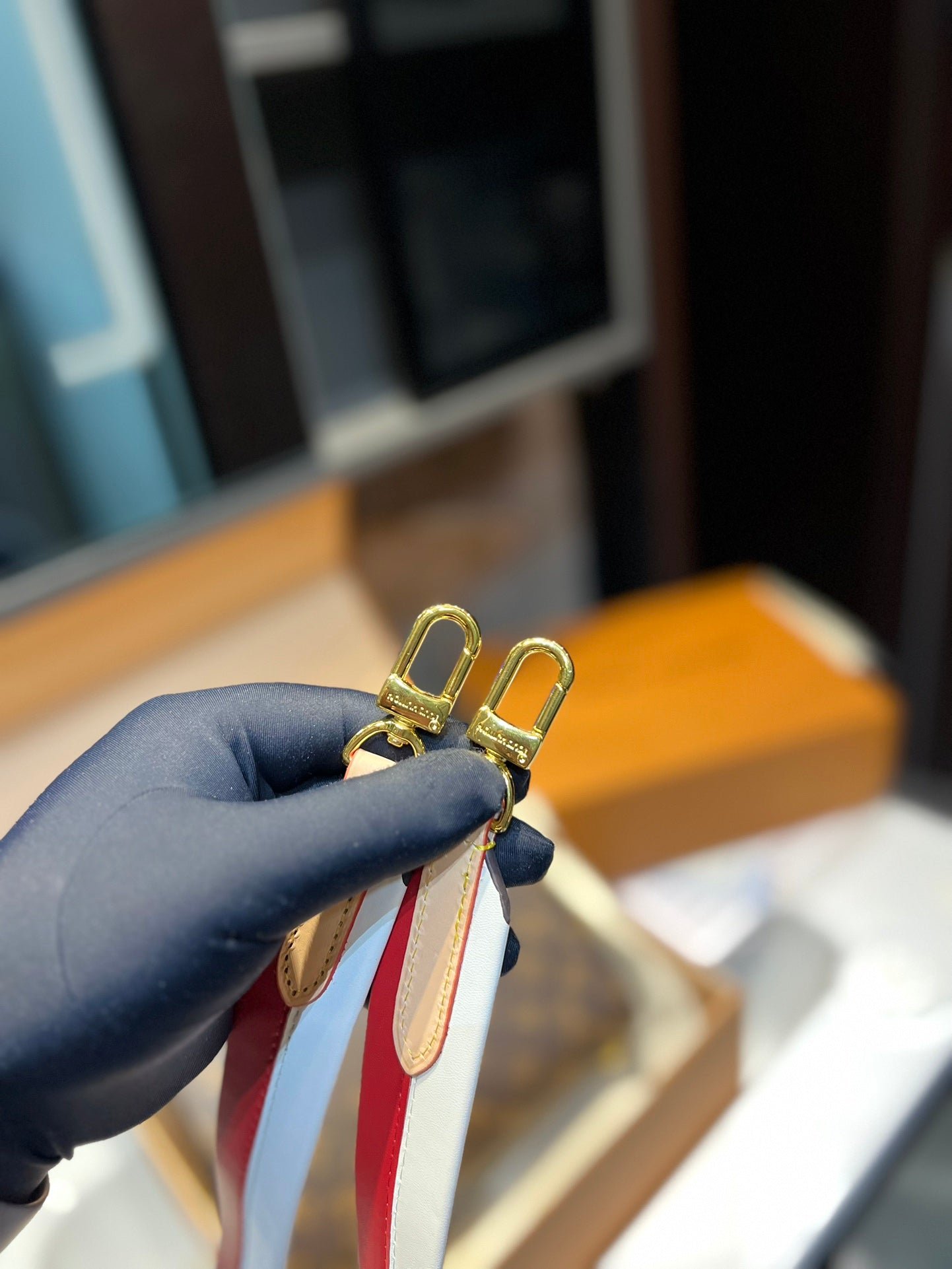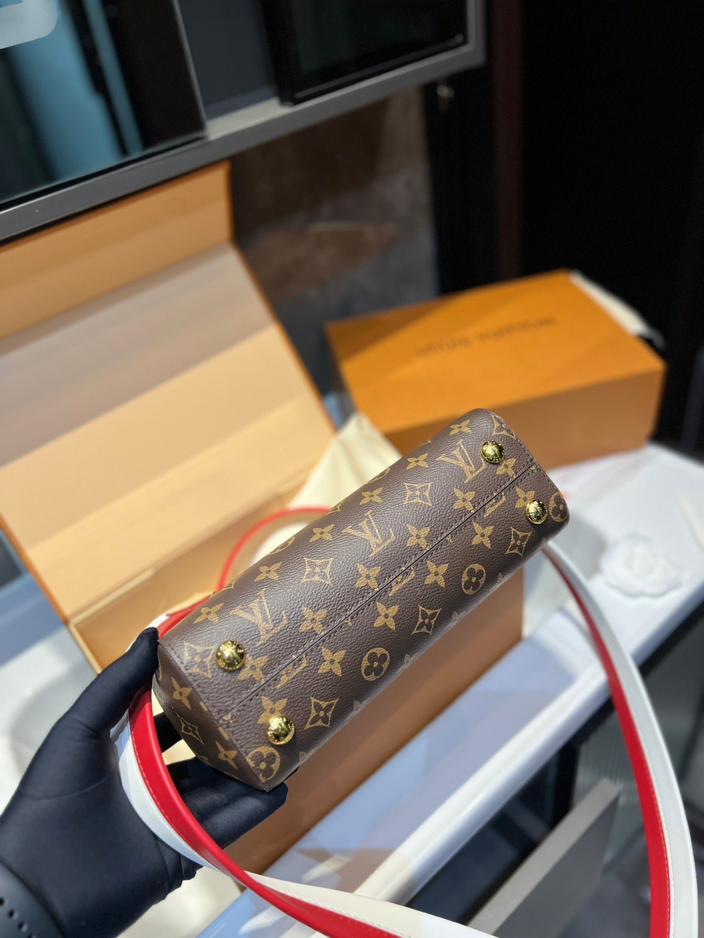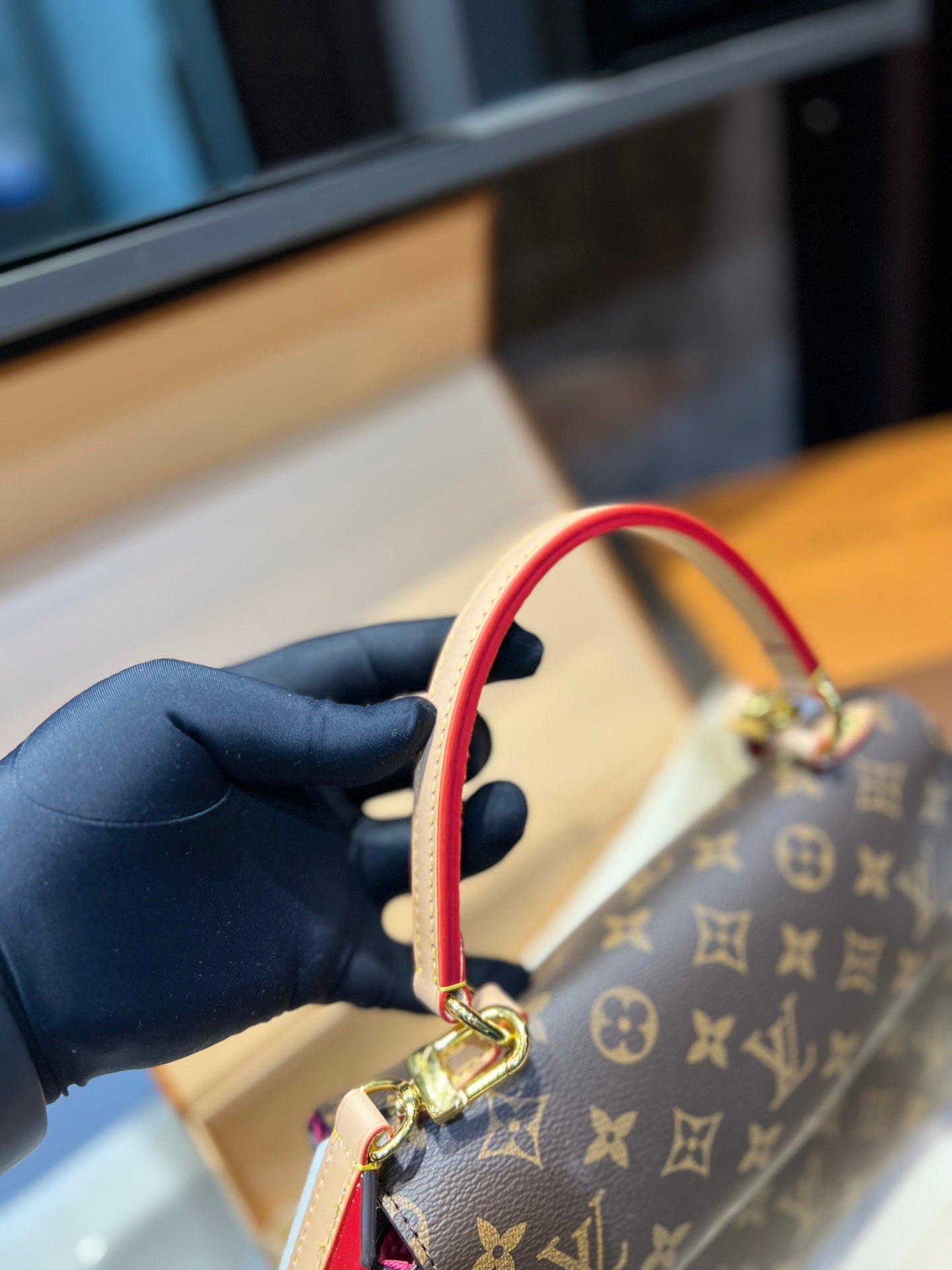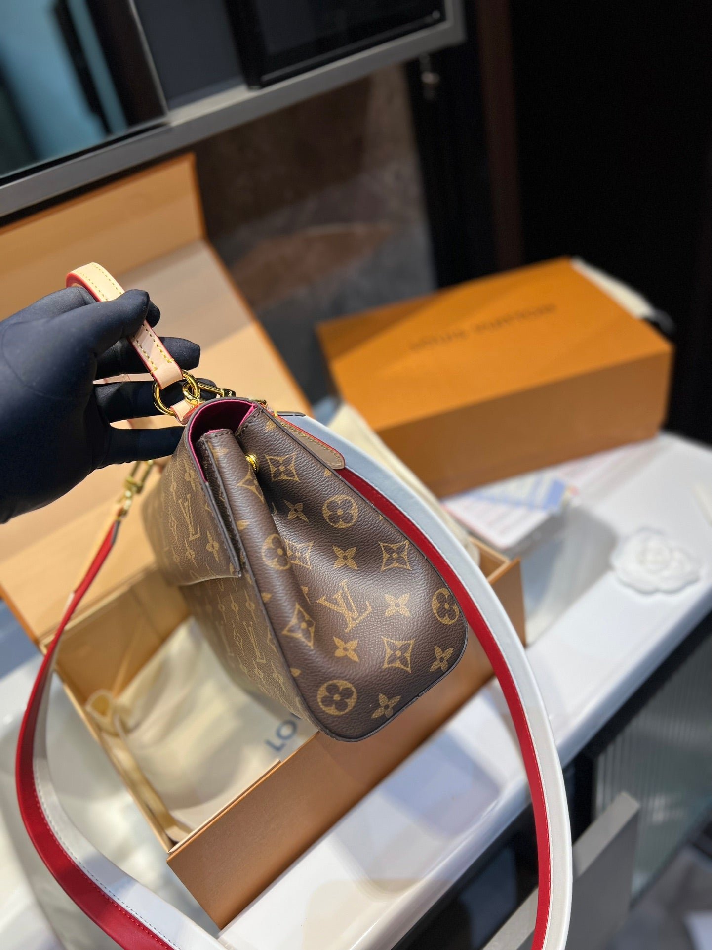 Louis Vuitton Cluny Brown Beige And Red Strap 25Cm