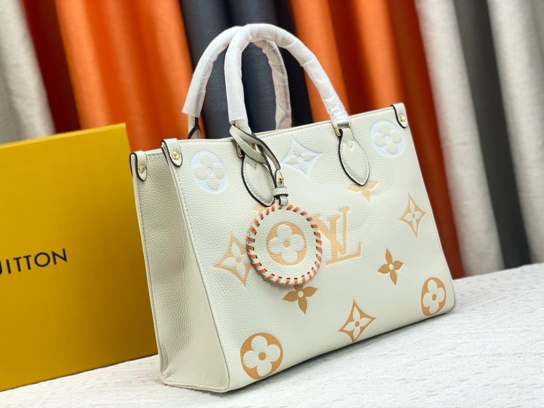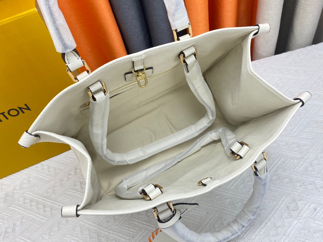 Louis Vuitton On The Go Mm Monogram Empreinte Leather White 34Cm M45717
