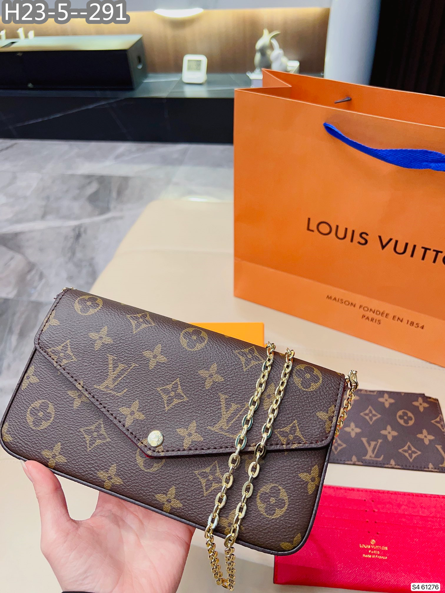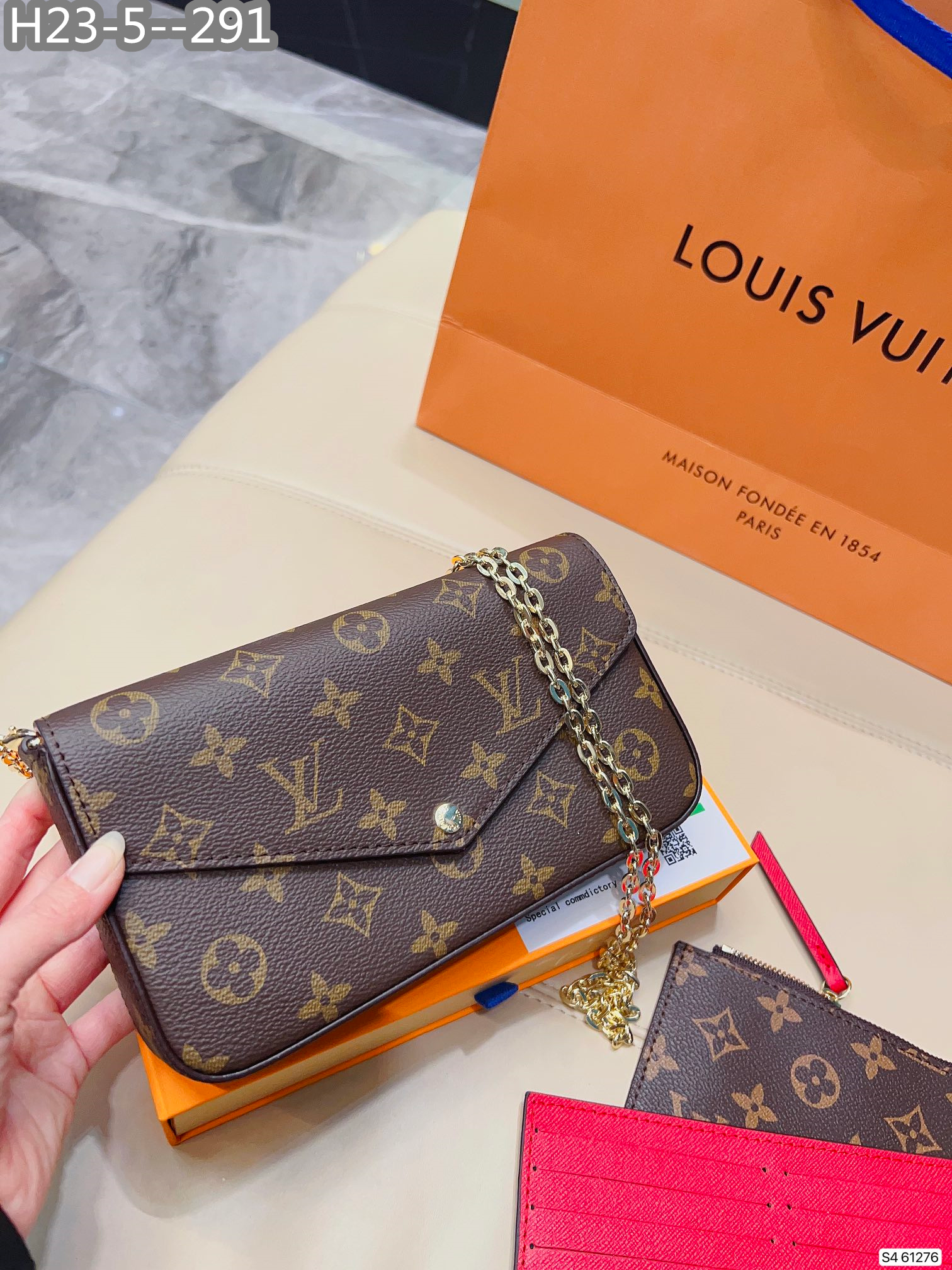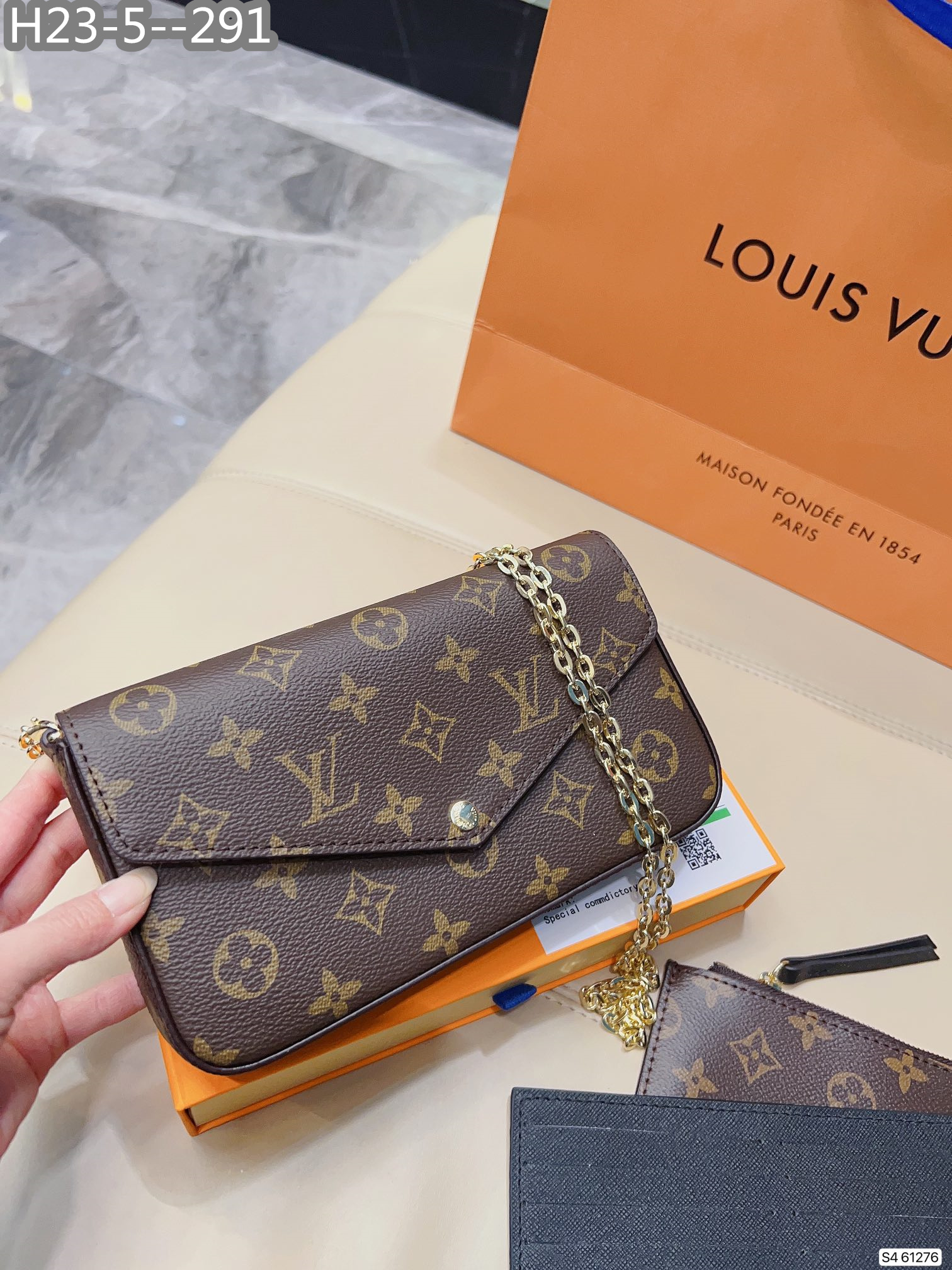 Each item comes with a box, dust bag, care manual, booklet, card, and bill of sale.