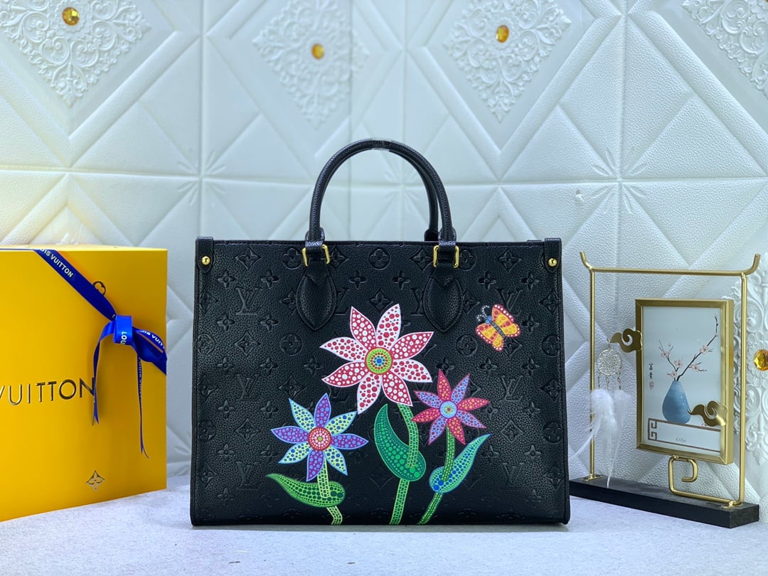 Louis Vuitton X Yk On The Go Mm With Flower Marquetry In Black 35Cm M46416