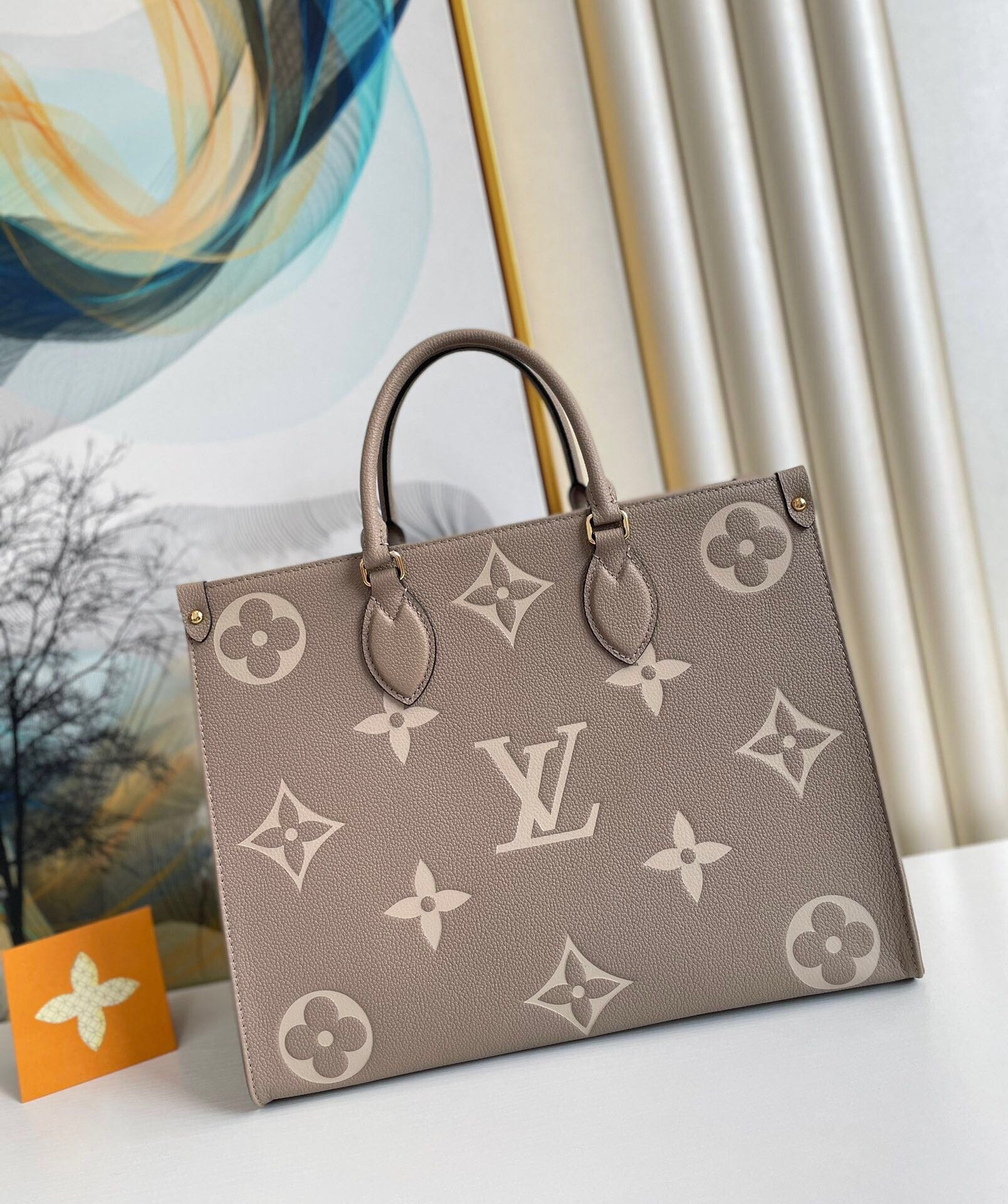 Louis Vuitton Onthego Mm Bicolor Monogram Empreinte Leather Dove/Cream M45494 35cm