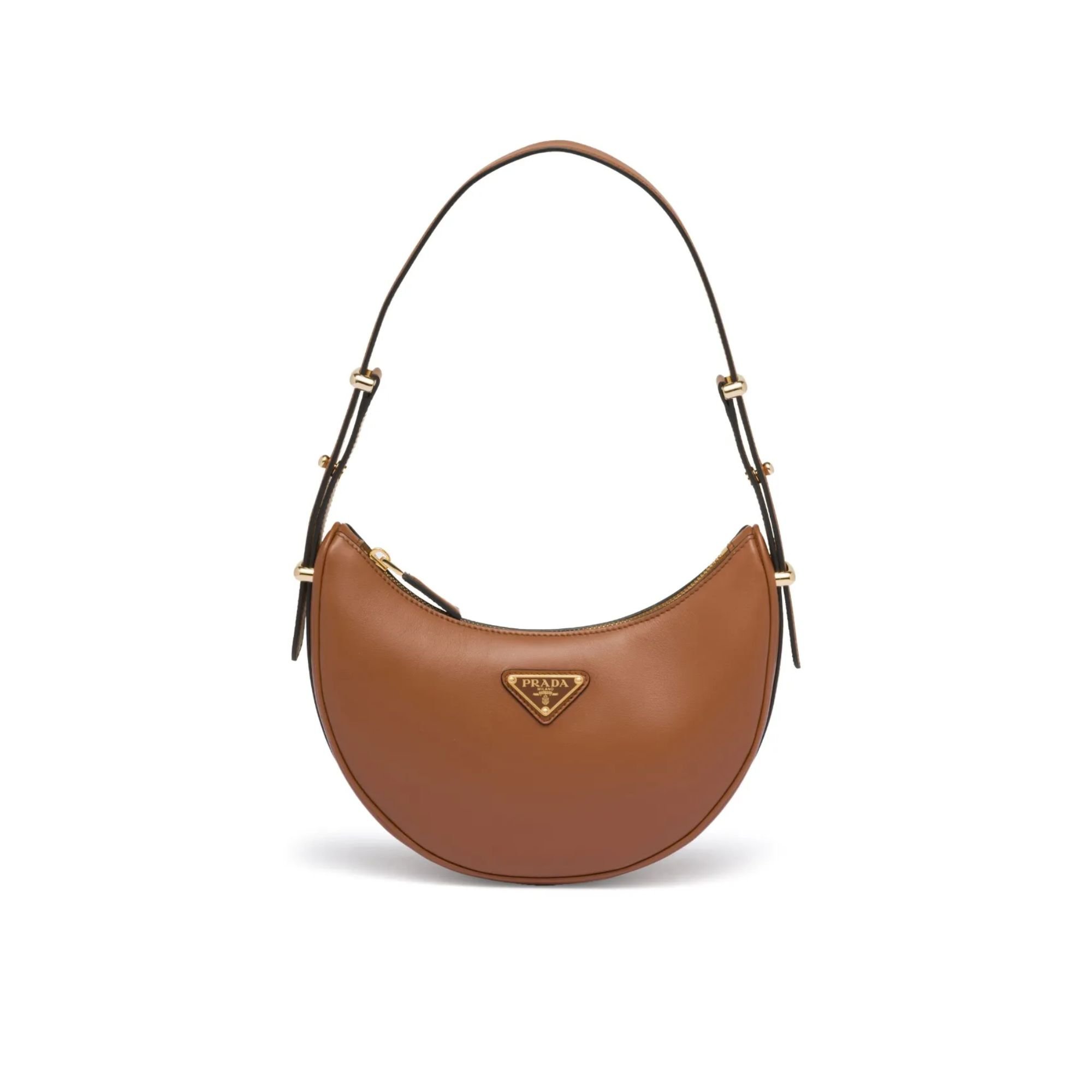 Prada Arqué Leather Shoulder Bag Cognac 22.5cm