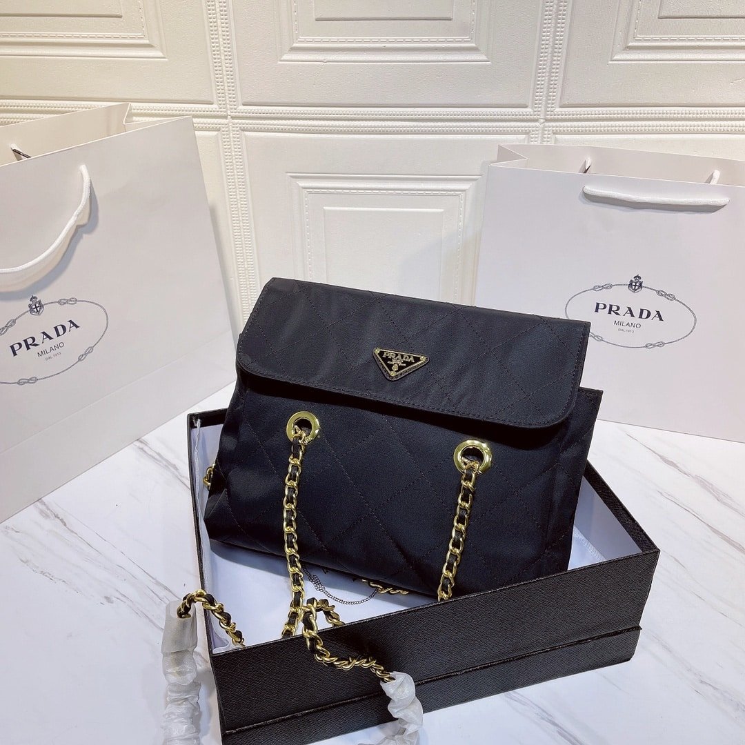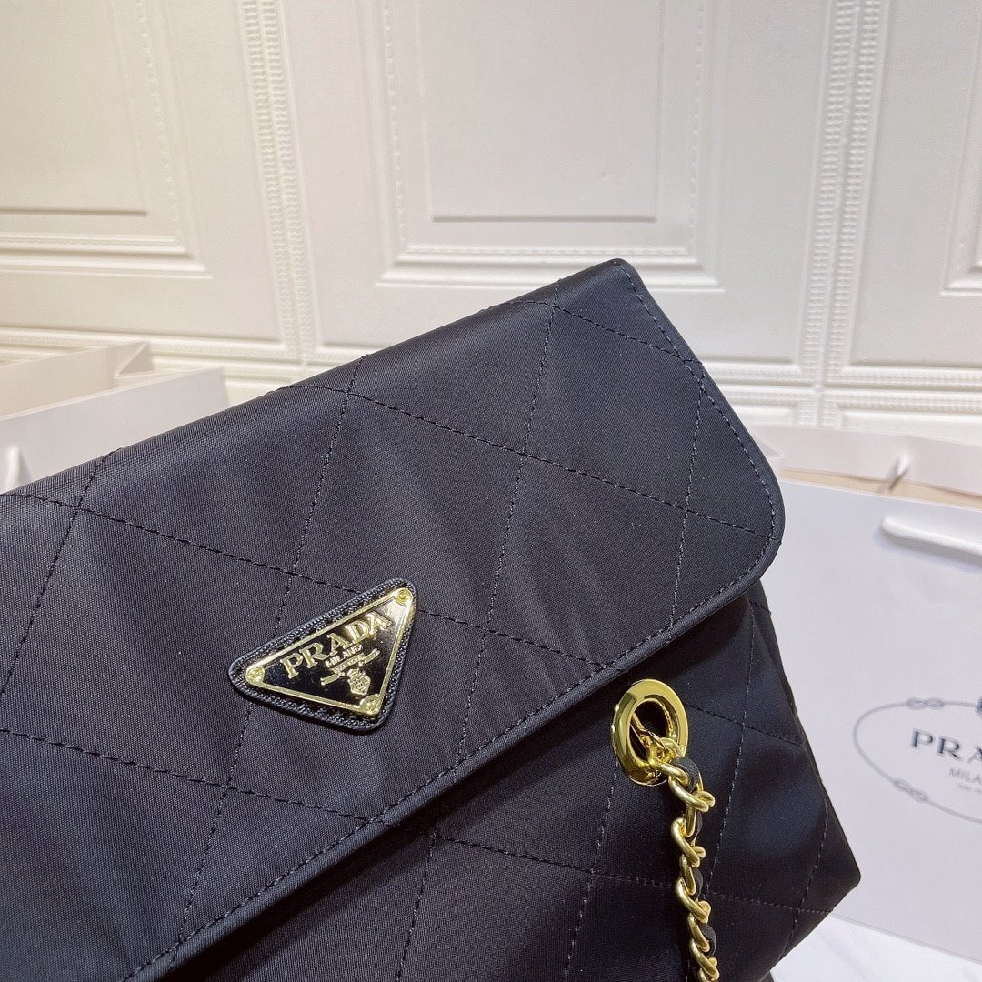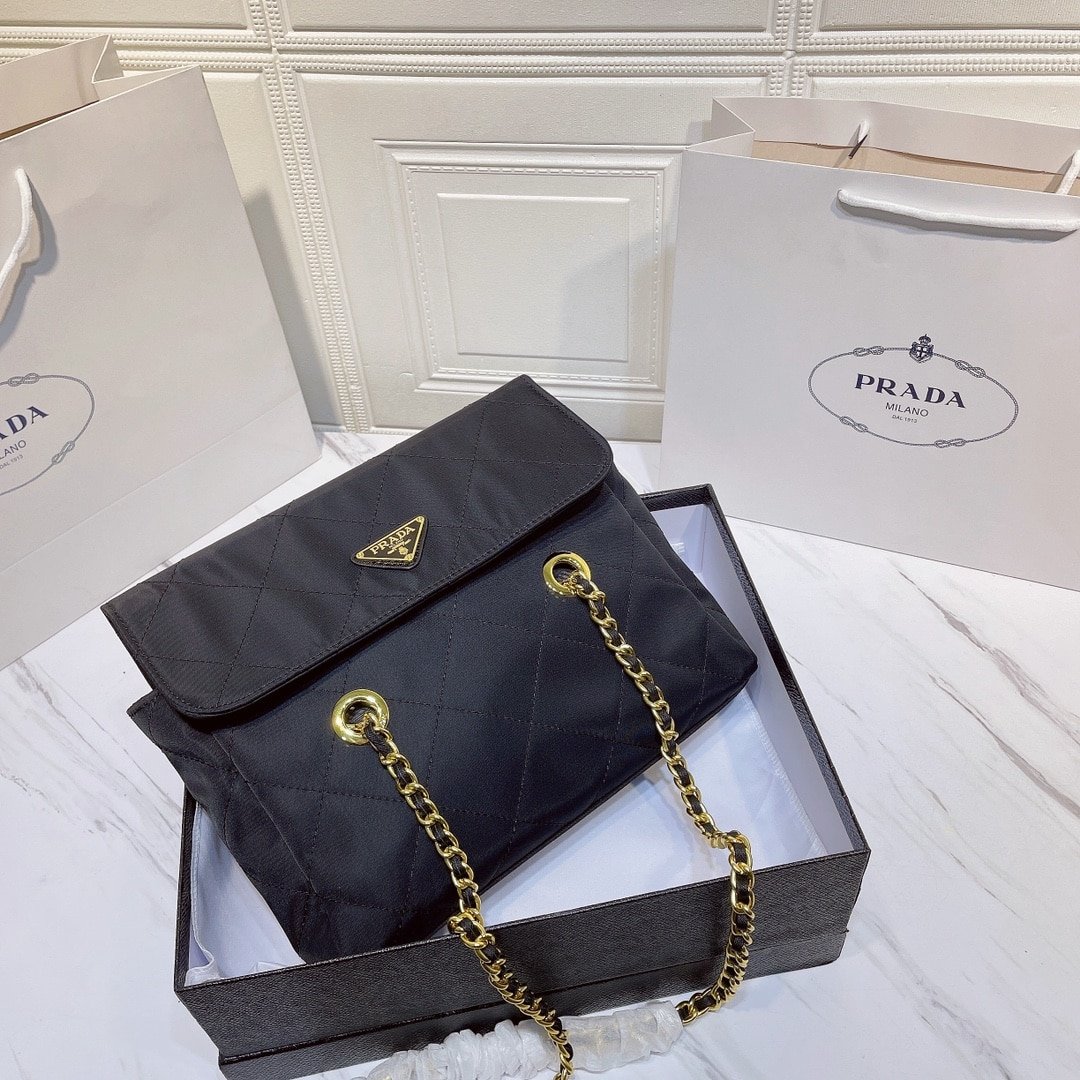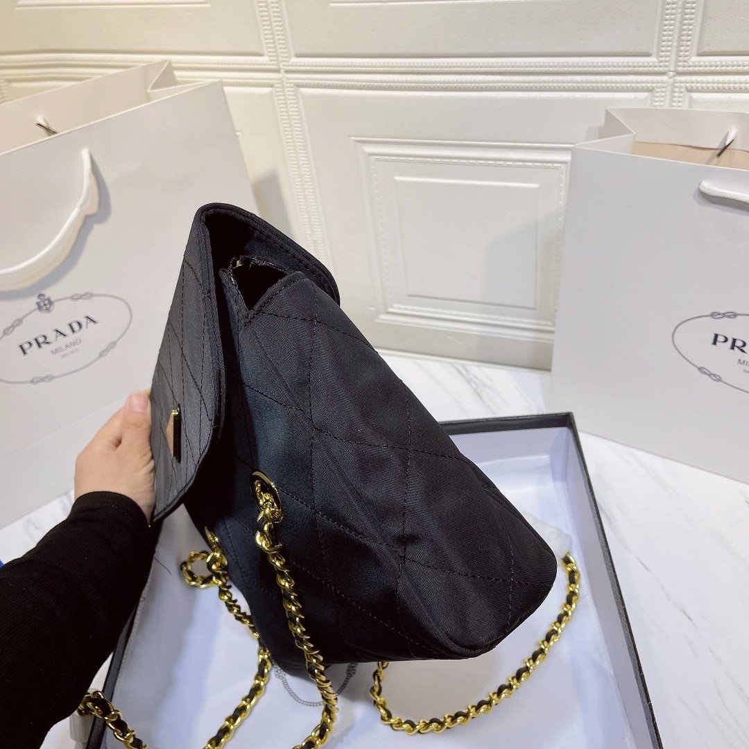 Prada Black Quilted Nylon Vintage Shoulder Bag Black 28Cm