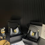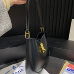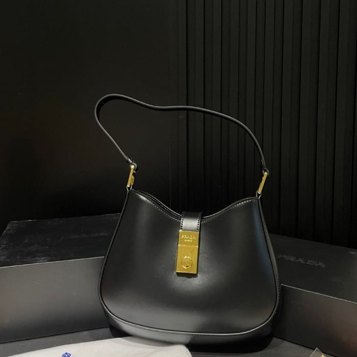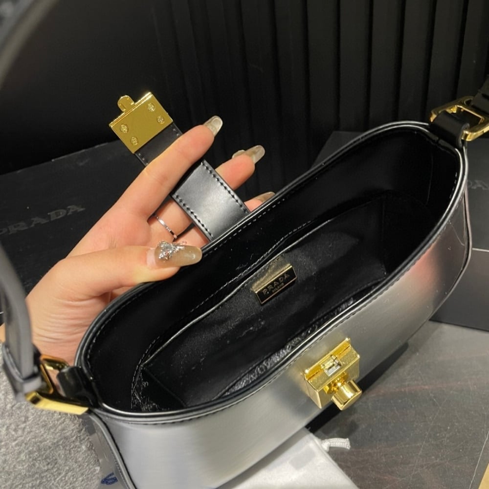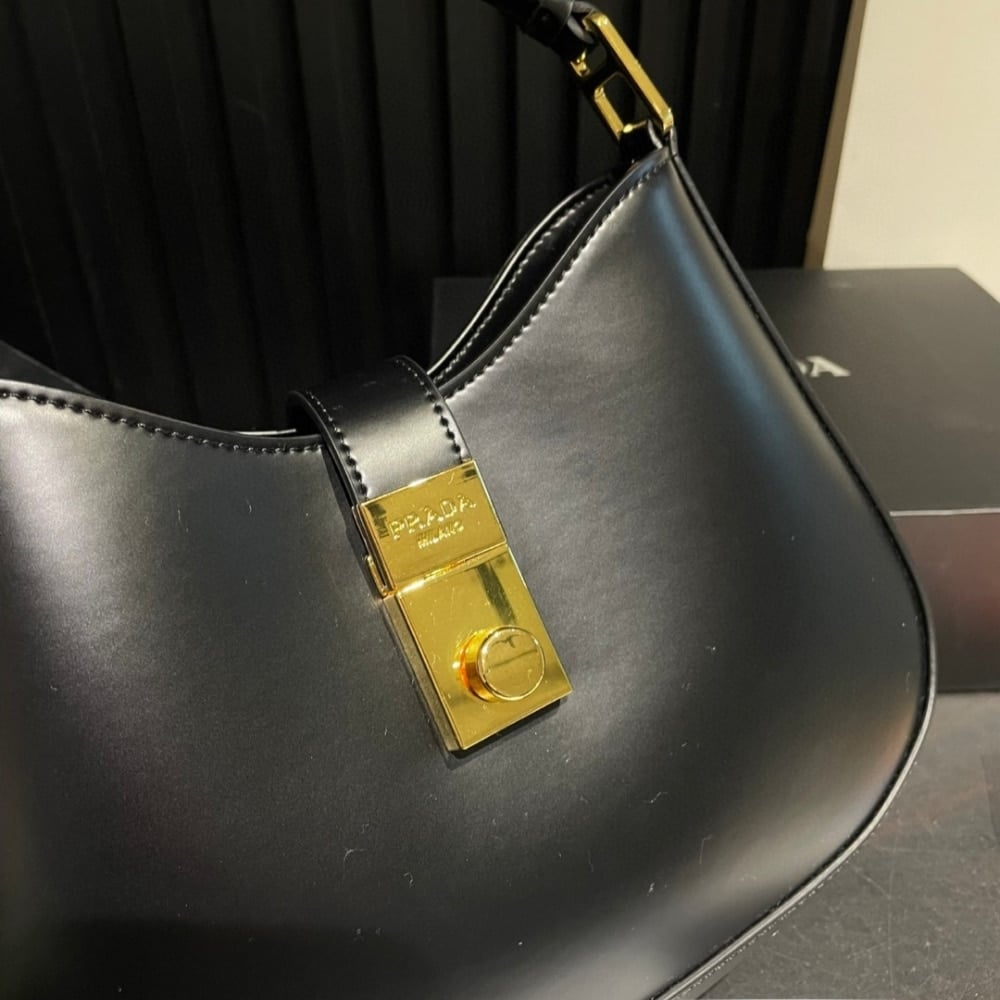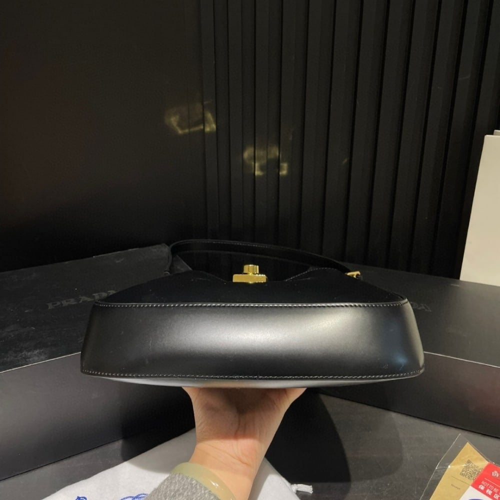 Prada Cleo Brushed Leather Shoulder Bag With Clasp Closure Black 26Cm