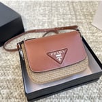 Prada Raffia And Leather Crossbody Bag Naturale Brown 20Cm