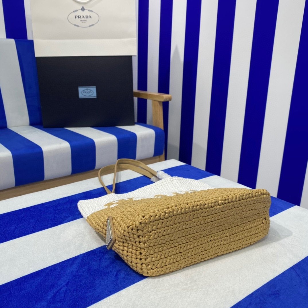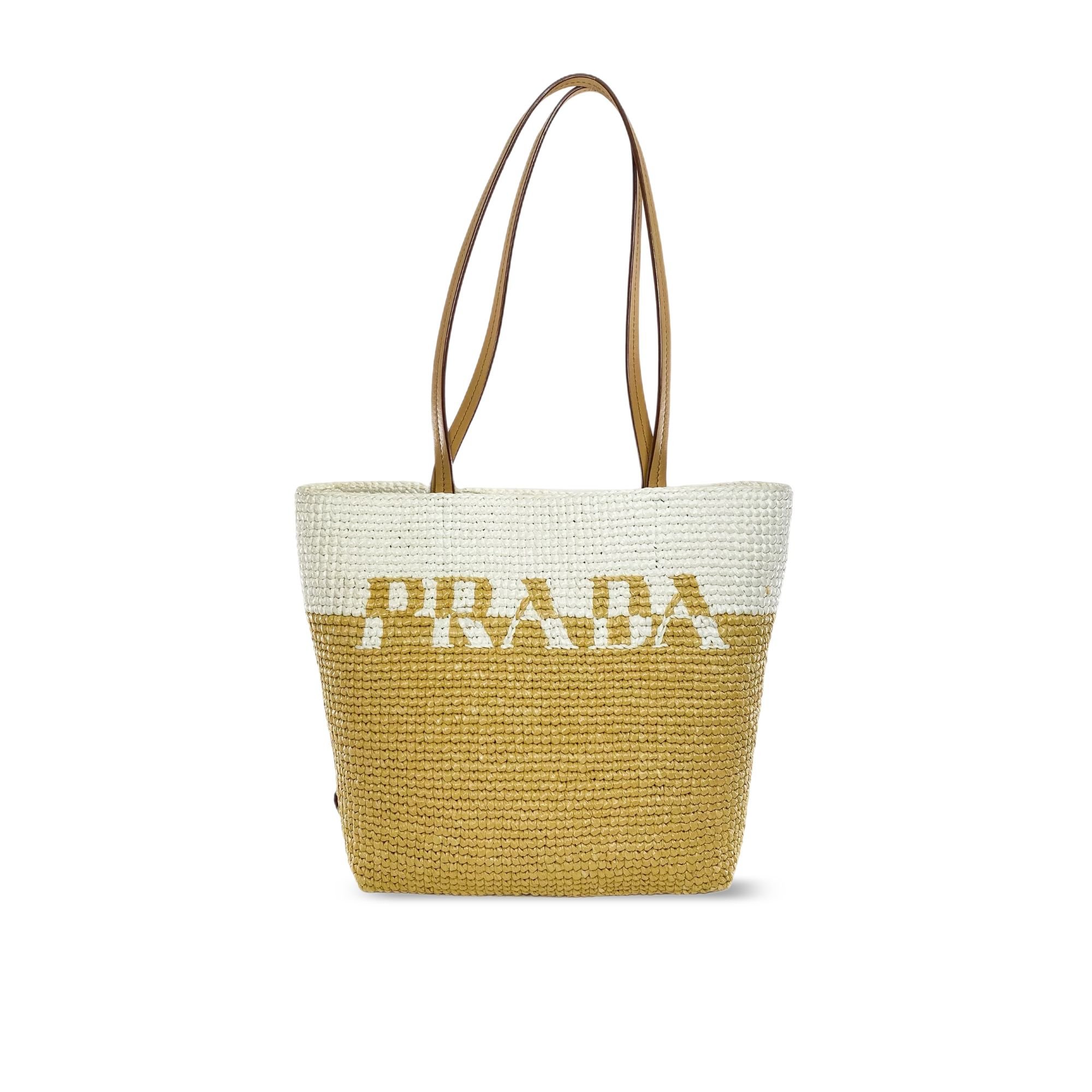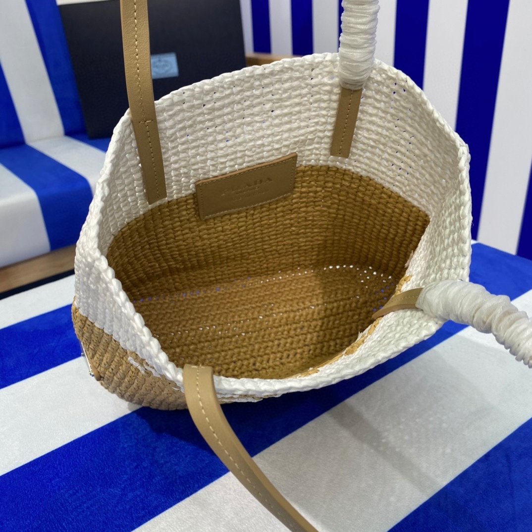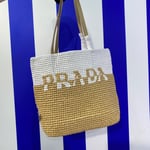Prada Raffia Tote Bag Beige 23cm