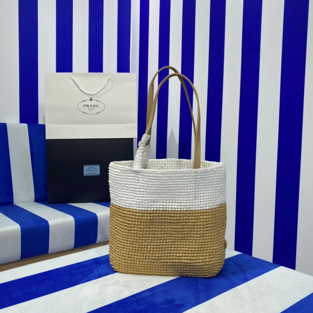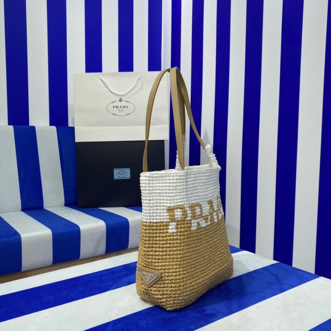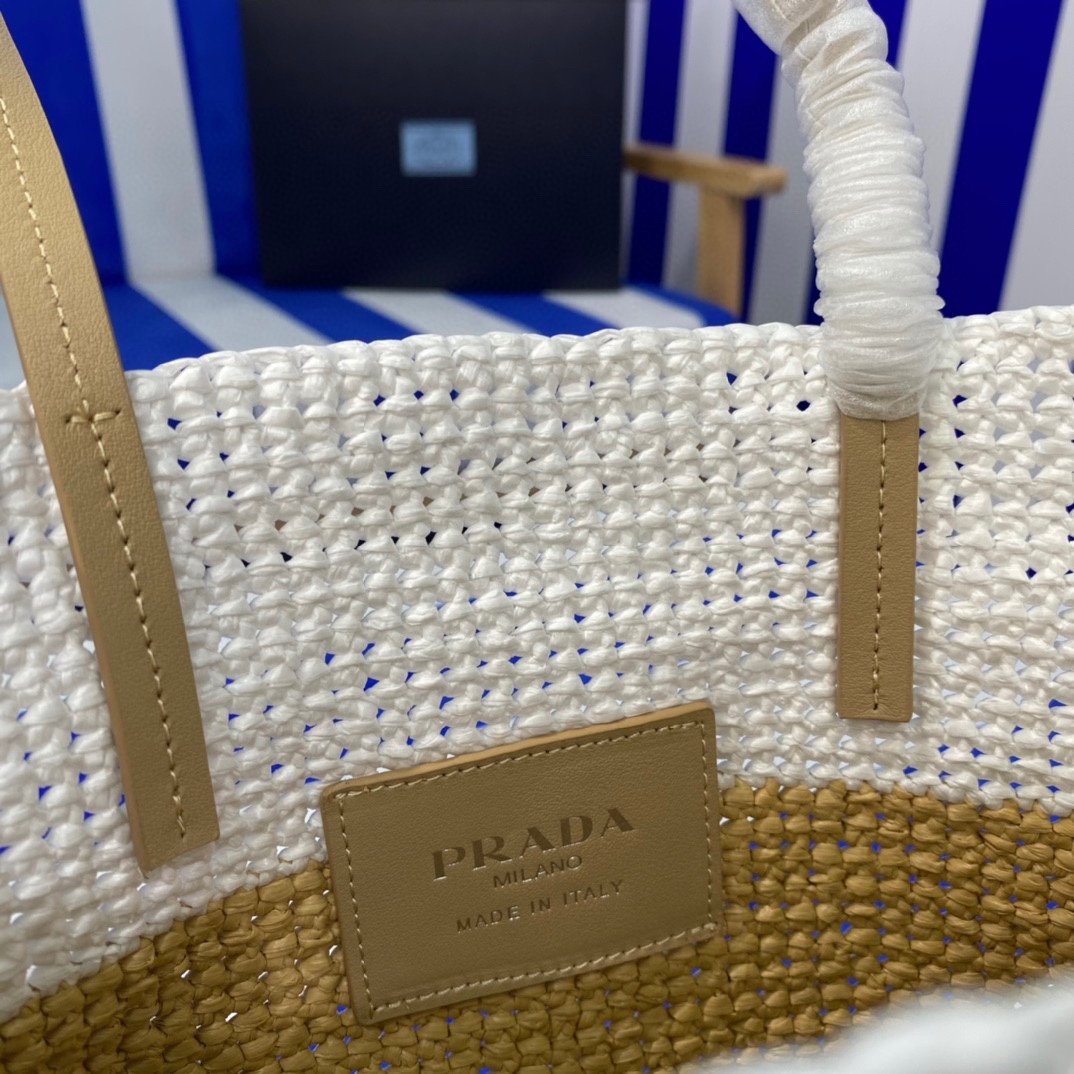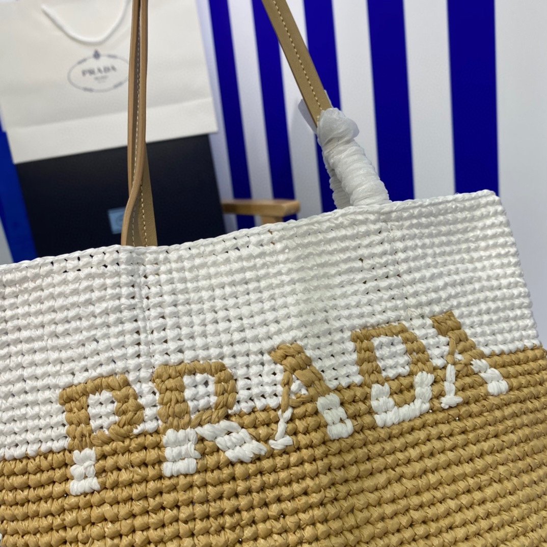 Prada Raffia Tote Bag Beige 23cm