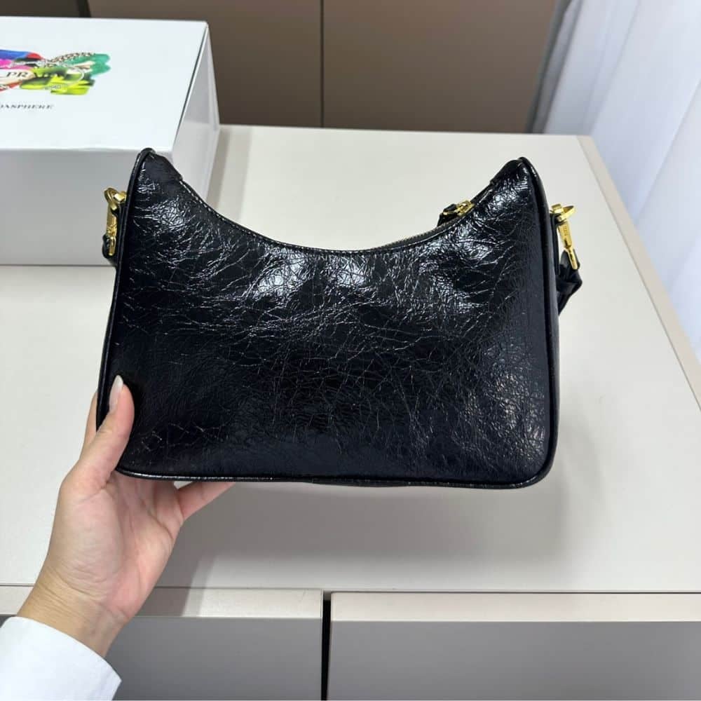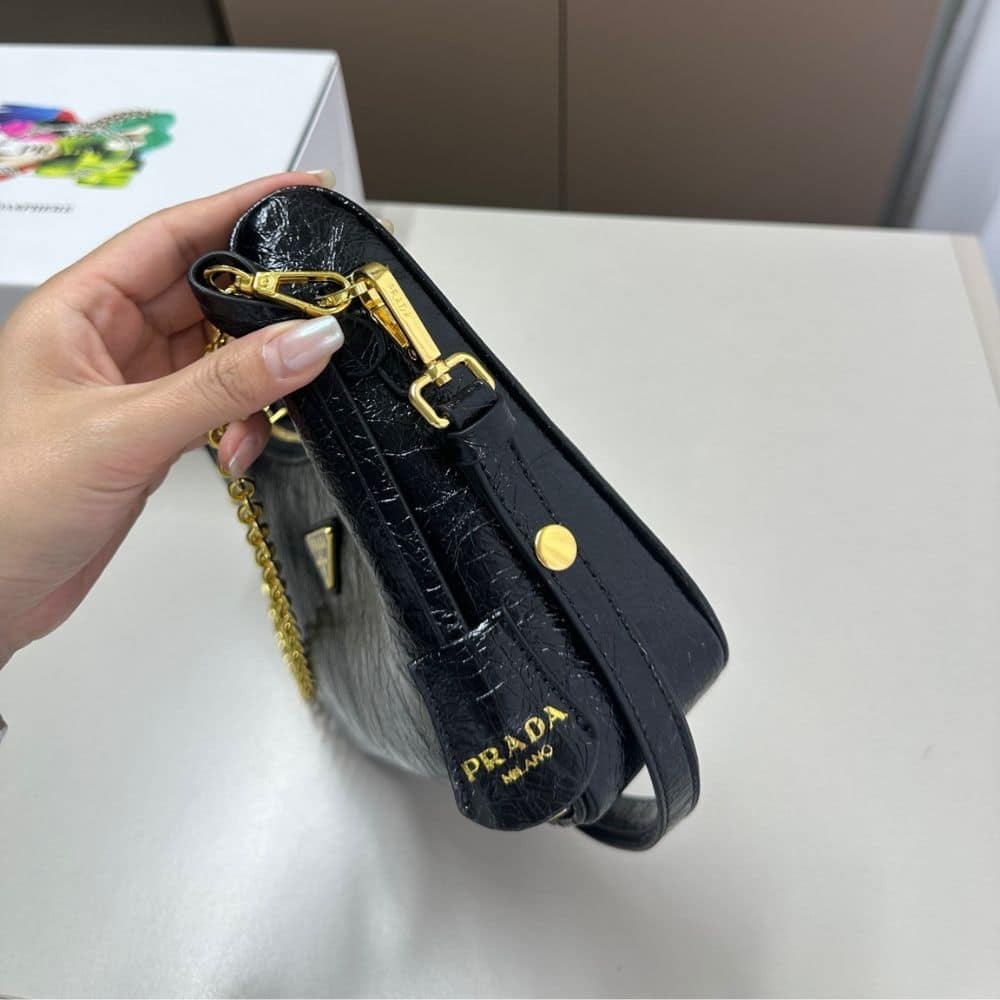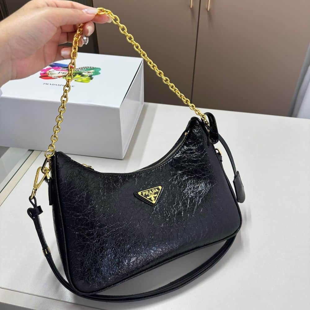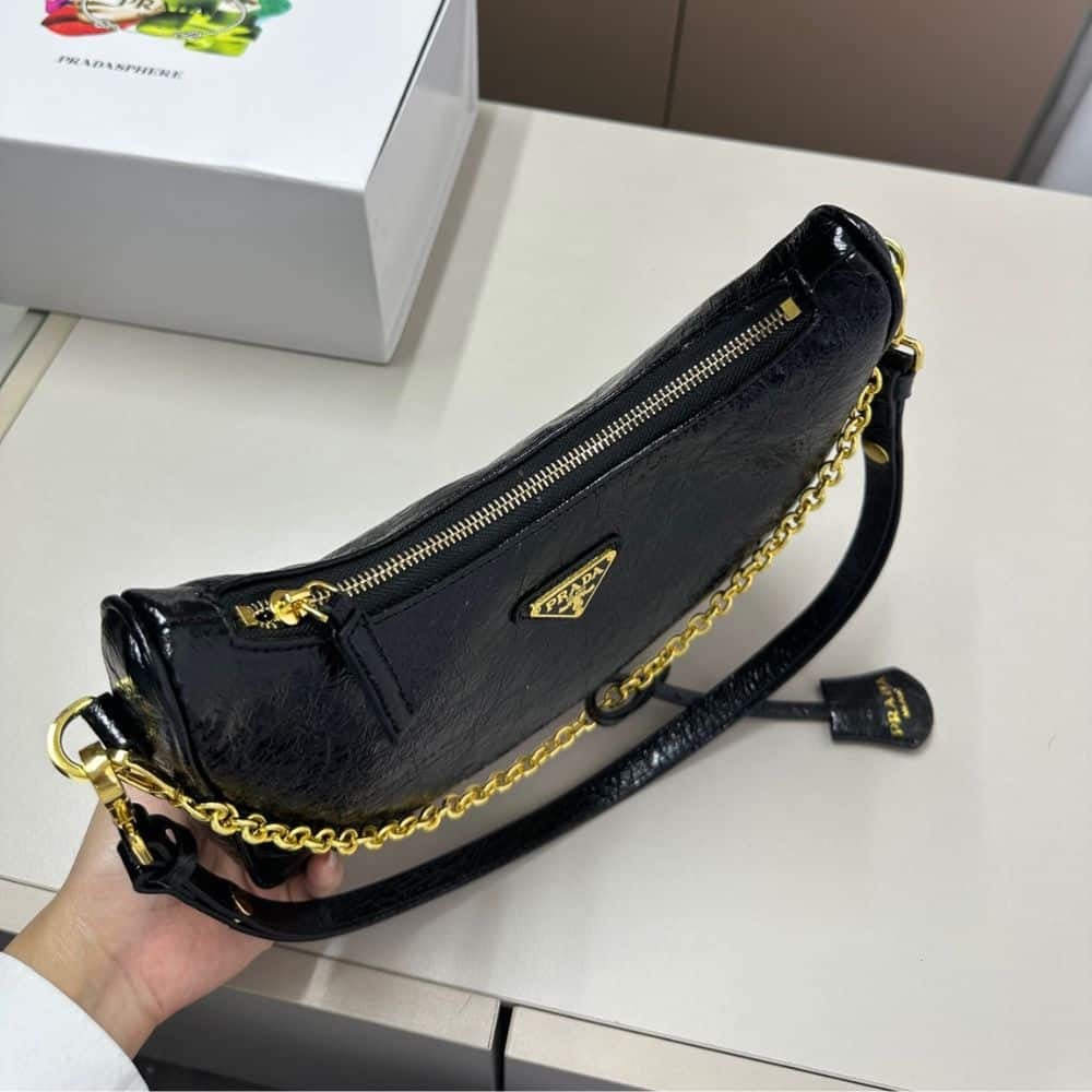 Prada Re Edition Mini Bag In Naplak Patent Leather Black 28Cm