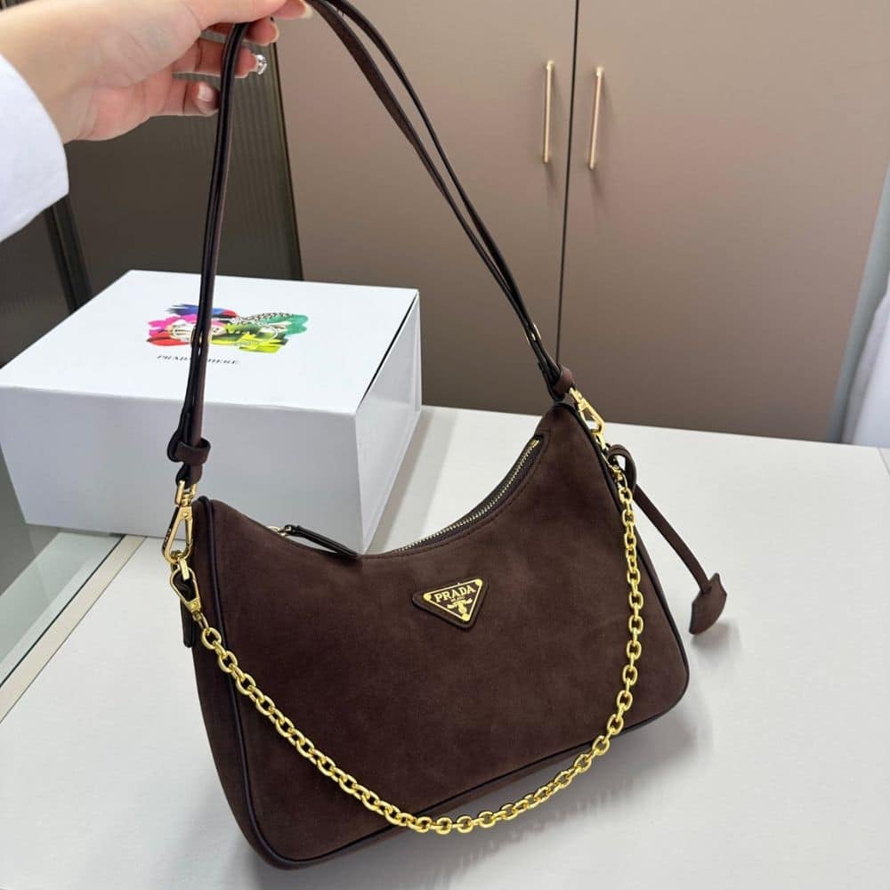 Prada Re Edition Mini Suede Shoulder Bag Dark Brown 28Cm