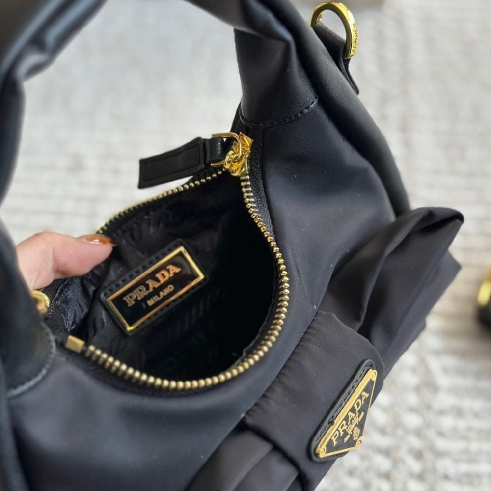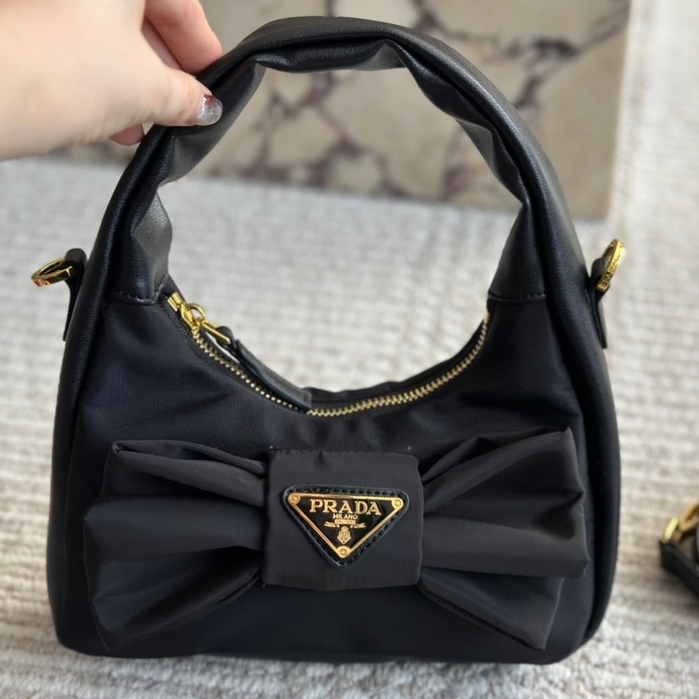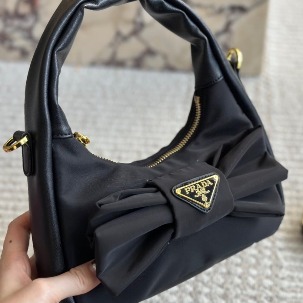 Prada Re Nylon And Nappa Leather Mini Bag With Bow Black 20Cm