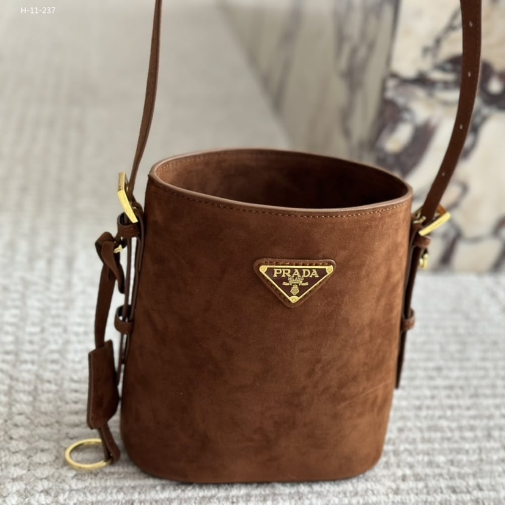 Prada Suede Mini Bucket Bag Cinnamon 18Cm