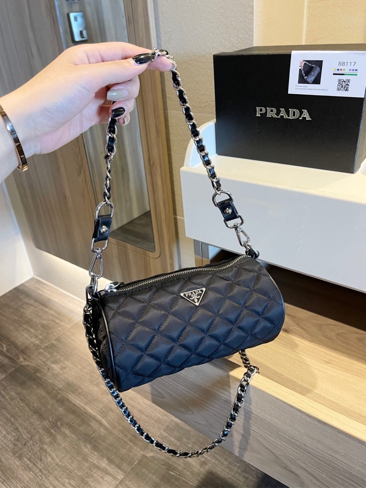 Prada Tessuto Black Quilted Barrel Bag Black 20Cm
