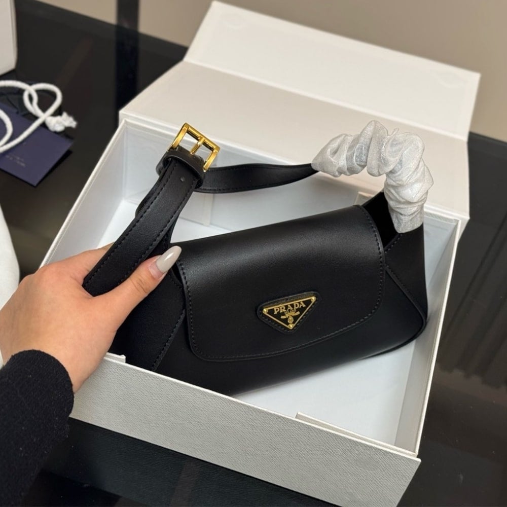 Prada Triangle Logo Shoulder Bag Black 24Cm