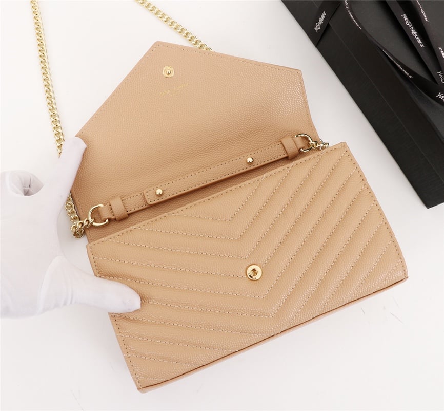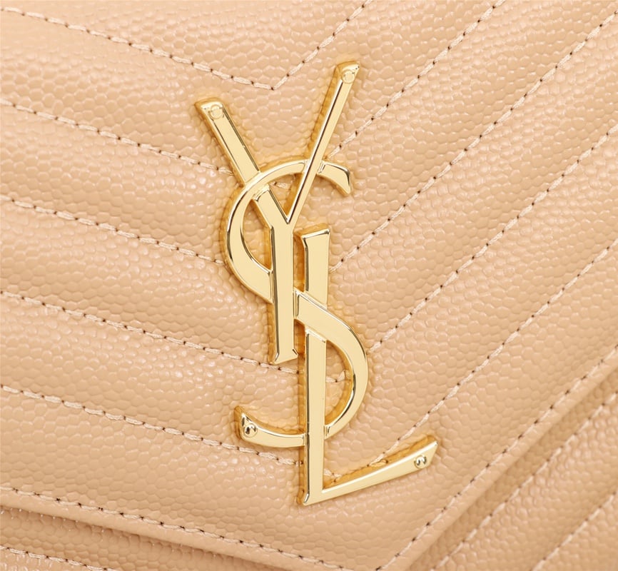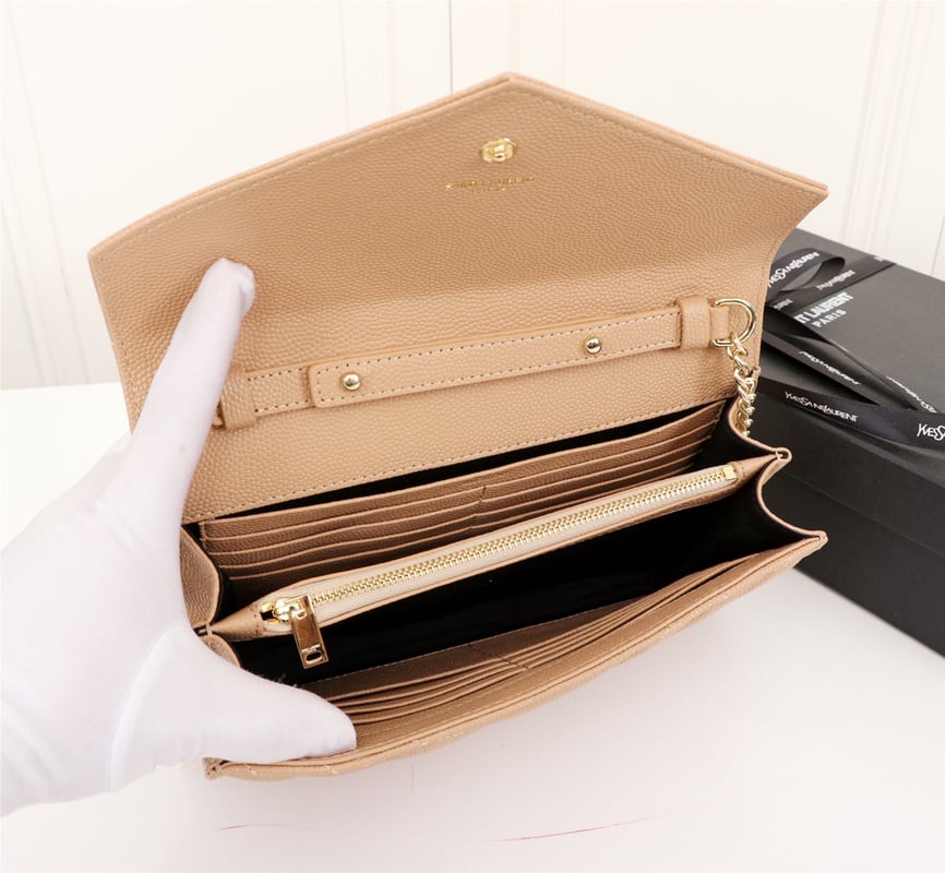 Saint Laurent Cassandre Matelasse Chain Wallet In Grain De Poudre Embossed Beige 22Cm