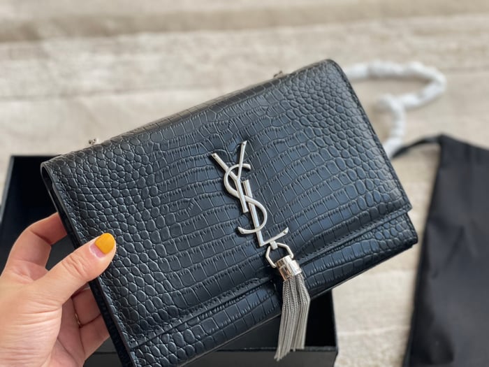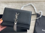 Saint Laurent Kate Small Chain Bag With Tassel In Shiny Leather Black