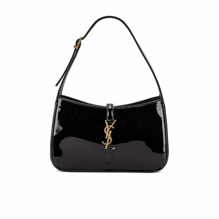 Saint Laurent Le 5 A 7 Patent Hobo Bag In Shiny Leather Black 25Cm