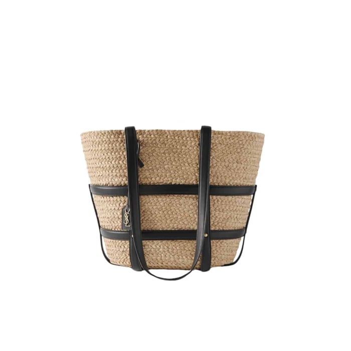 Saint Laurent Medium Panier Harness Raffia Tote Beige 17Cm