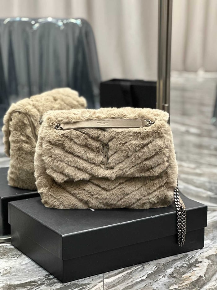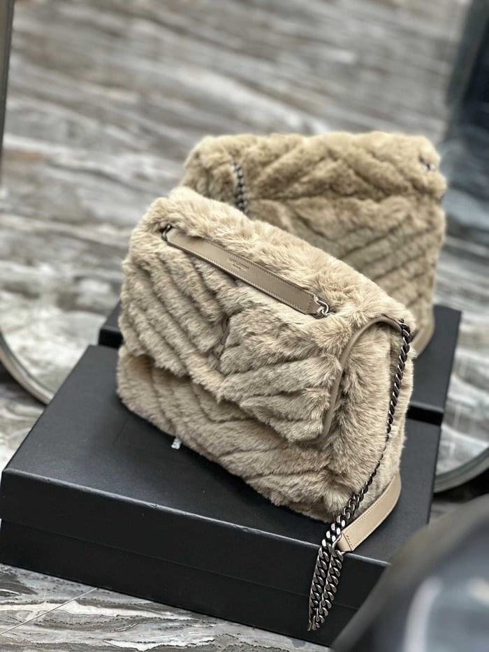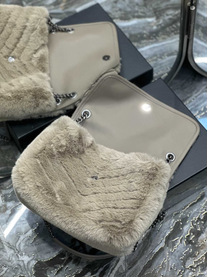 Saint Laurent Niki Medium Chain Bag In Shearling Brown
