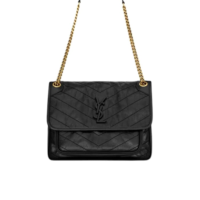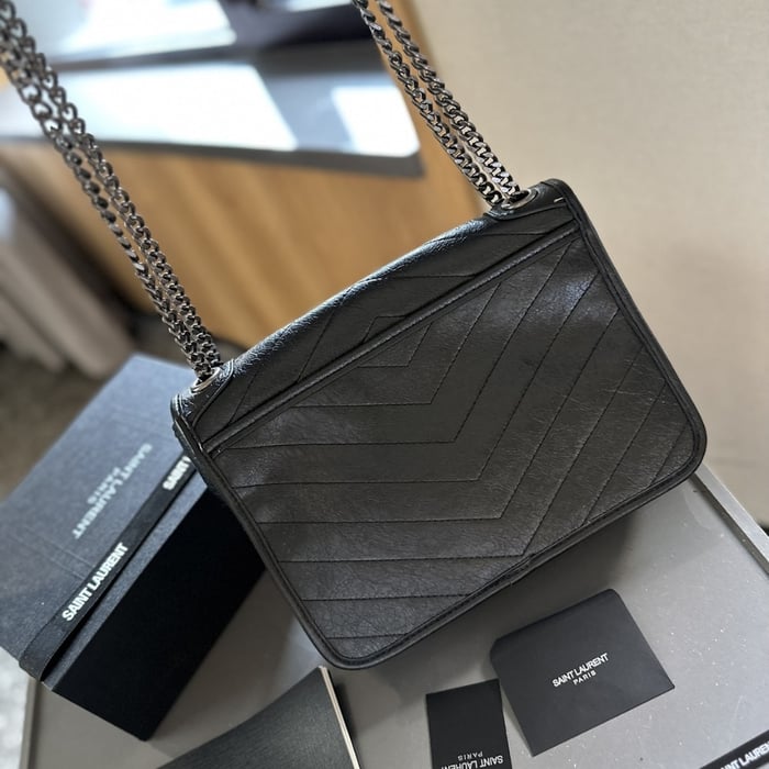Saint Laurent Niki Medium In Vintage Leather Black Noir 28Cm