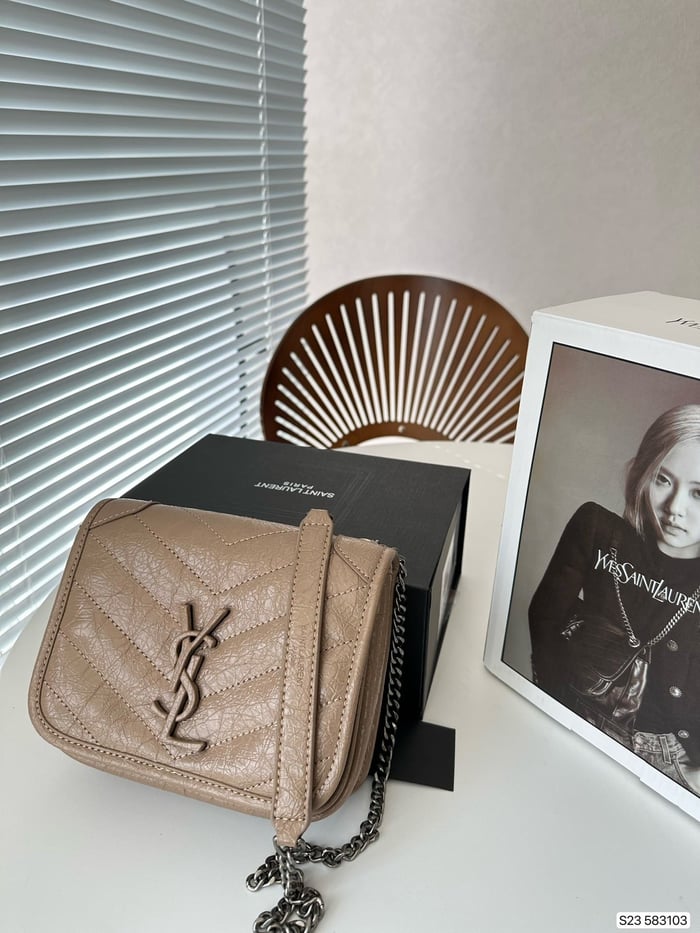 Saint Laurent Niki Vintage Leather Chain Wallet Beige 19Cm