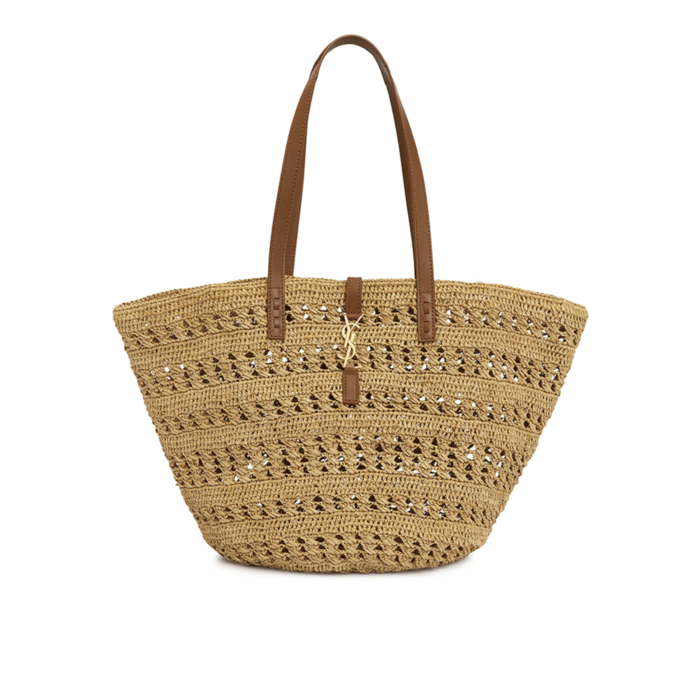 Saint Laurent Panier Medium Bag in Crochet Raffia and Smooth Leather 42cm