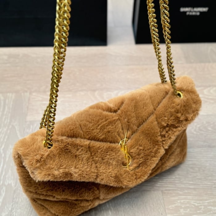 Saint Laurent Puffer Bag In Shearling Brown 28Cm