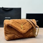 Saint Laurent Puffer Bag In Shearling Brown 28Cm