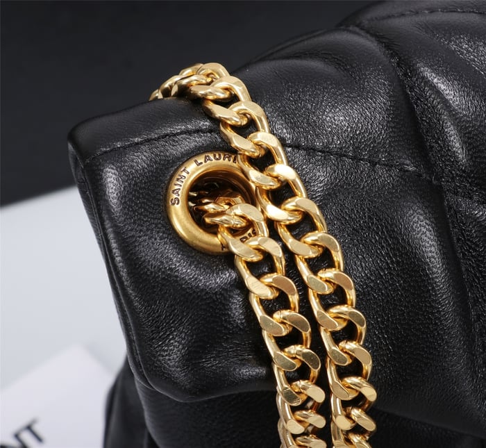 Saint Laurent Puffer Small Chain Bag In Quilted Black Gold