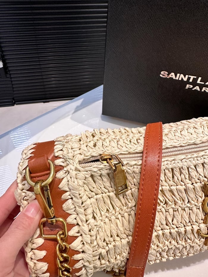 Saint Laurent Sade Raffia Tube Bag In Natural 33Cm